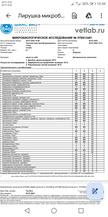 Но помимо антиб и нистатина целыми днями чистила вспомогательными средствами птицу.