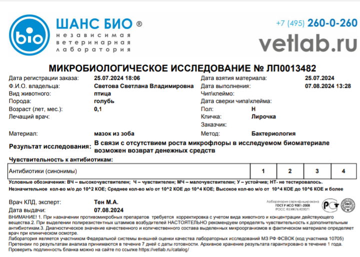 Напомню, 14июля у Лиры был энтерококк фекалис 10^5