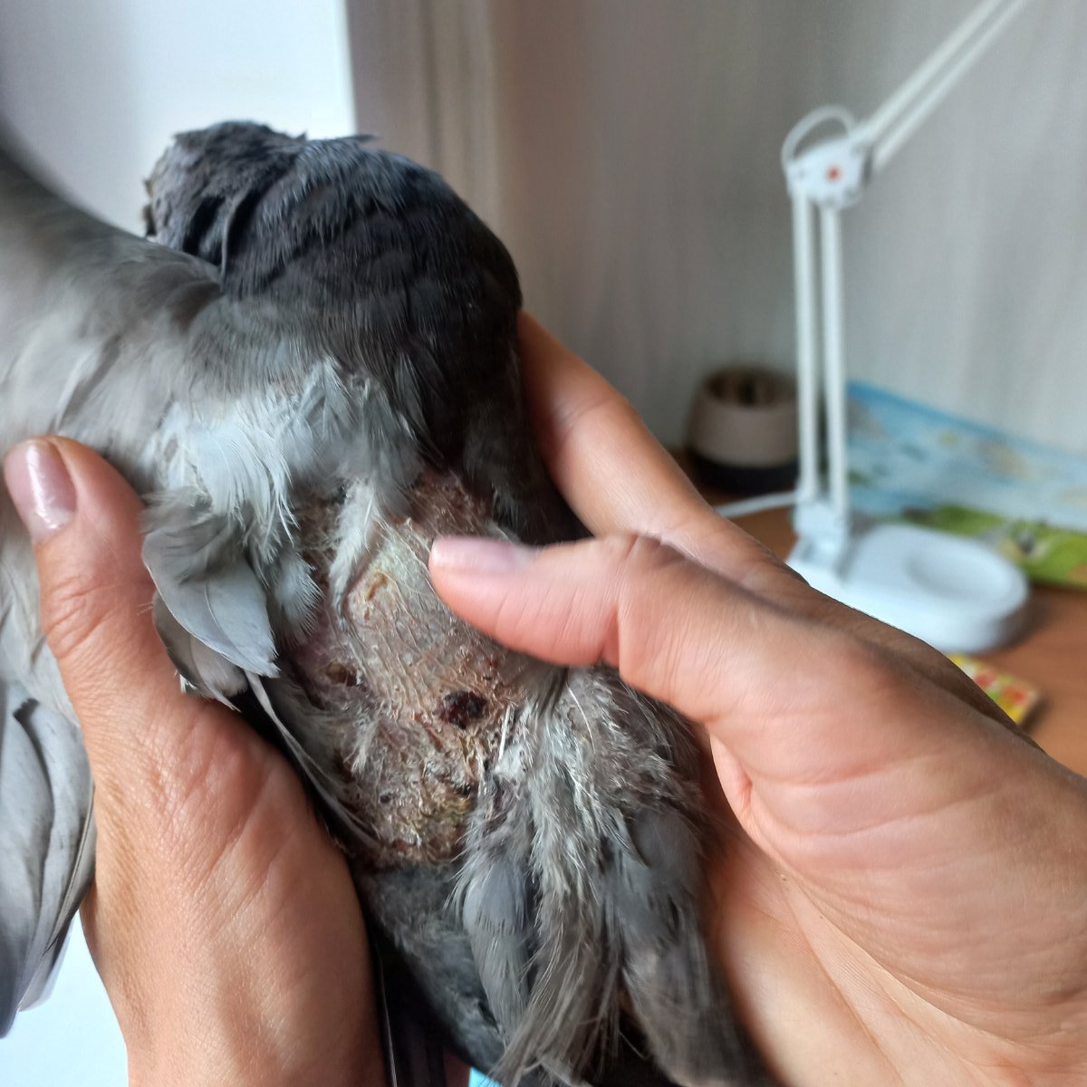 Инна Чупрова Опубликовано 27 июня, 2024 Автор #31 Опубликовано 27 июня, 2024 Фото корост и собственно всего лысого бока птицы. Кожа мне кажется не очень здоровая Волдырь спустили. А вот кончики крыльев так и не поняли как перевязать. Попробовали когезивным бинтом, он тут же слетел. Как именно перевязывать и каким пластырем? 1