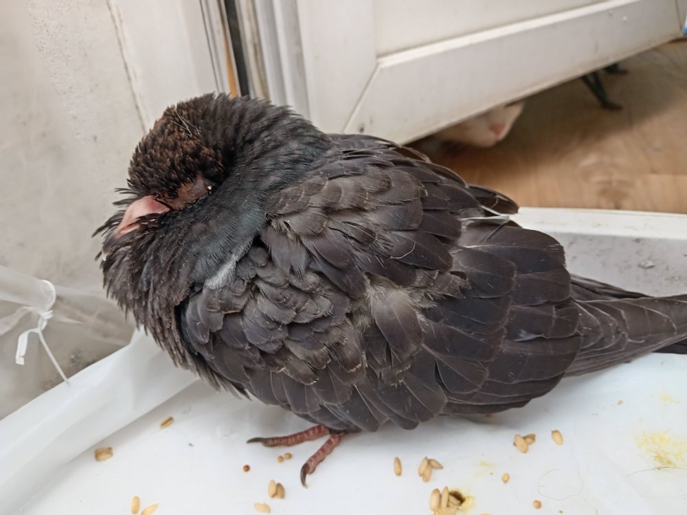 маленький принц Опубликовано 8 июня, 2024 #3 Опубликовано 8 июня, 2024 на глаза СРОЧНО любую глазную мазь с антибиотиком из аптеки на час (не глазная мазь может щипать глаза) через час гной который размяк от мази ОЧЕНЬ ОСТОРОЖНО снять ватным тампоном ВНИМАНИЕ корки гноя НЕ отдирать силой чтобы не повредить глаз а снимать мягко ватным тампоном повторять каждый час до снятия гноя после того как глаза очистятся сделать фото в макросъёмке при хорошем освещении без фотовспышки глазная мазь нужна только снять засохший гной в норме птицам глаза мазью не мажут из-за третьего века а используют капли поскольку выделения из глаз у птиц обычно происходят из носоглотки - очень осторожно (давая отдышаться) осмотрите и ощупайте горло (в том числе под клювом) нет ли наростов или налёта - очень осторожно (не задушите!) проведите пальцами вдоль вдоль шеи нет ли шишек и наростов - очень осторожно (давая отдышаться) проверьте тоненькой ватной палочкой нет ли во рту вязких слюней или слизи - осторожно нажмите на восковицы (мешочки над клювом) не полезут ли сопли - послушайте спинку чтобы приоткрыл клюв сам осторожно нажмите под нижней челюстью (дальше клюв можно осторожно так чтобы не сломать открыть руками) альтернативный способ: по уголкам рта легонько надавить с обеих сторон ВНИМАНИЕ твёрдые наросты НЕ отрывать! птица может захлебнуться хлынувшей кровью 3 часа назад, ira3007 сказал: Вот так сидит на балконе открытом нужна клетка или коробка или кошачья переноска потому что он у Вас как только почувствует себя лучше от лечения упорхнёт с балкона недолеченным 3 часа назад, ira3007 сказал: у нас прохладно предложите малышу грелку с возможностью при желании отодвинуться 3 часа назад, ira3007 сказал: Истощен. накормите кашкой на воде без молока без соли и без сахара (рожь НЕЛЬЗЯ) накормив через три часа ощупайте зоб как найти зоб: ведите вдоль кости киля пальцем вперёд спереди между килем и шеей будет ямка а в ней мешочек = зоб если зоб опустел то накормите ещё если не опустел то напишите на форум сколько ещё осталось еды в зобу ВНИМАНИЕ до полного освобождения зоба НЕ кормить ВНИМАНИЕ кормить только при ПУСТОМ зобе (если накормить при не пустом зобе то есть риск что зоб остановится и птица рискует захлебнуться рвотой) так же через три часа после кормёжки сделайте фото помёта на белой бумаге при хорошем освещении для ориентировки взрослому в день нужно полторы-две столовые ложки сухого зерна с горкой (почтовому голубю который много летает в день нужно три столовые ложки с горкой) и это количество нужно считать до варки каши так как при варке зерно набухает и впитывает воду чтобы не умер от истощения СРОЧНО подкожные уколы глюкозы 5% с раствором Рингера или с физраствором 2 части глюкозы 5% и 1 часть раствора Рингера или физраствора на обычный шприц надень иглу от инсулинового шприца со съёмной иглой (бывает с несъёмной) оттяните кожу между лопаток и держа иглу инсулиновгого шприца параллельно спине так чтобы игла не могла войти ни в лёгкое ни в позвоночник введите иглу под кожу количество на глаз так чтобы не лопнула кожа ВНИМАНИЕ при любых манипуляциях с птицей голову держать ВЫШЕ зоба чтобы случайно не захлебнулся содержимым промежуток между уколами не менее 4 часов глюкозу нужно колоть каждый день пока более-менее не отъестся если нет глюкозы 5% а есть только глюкоза 40% 