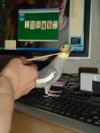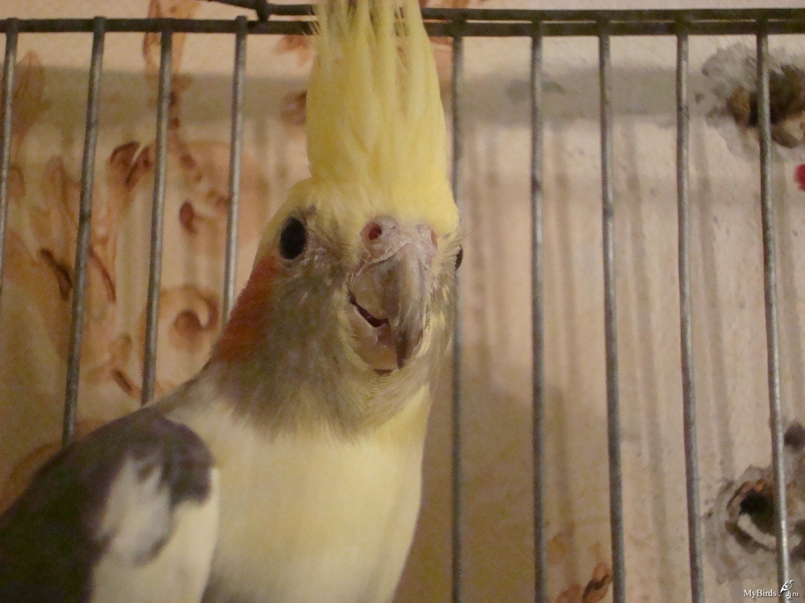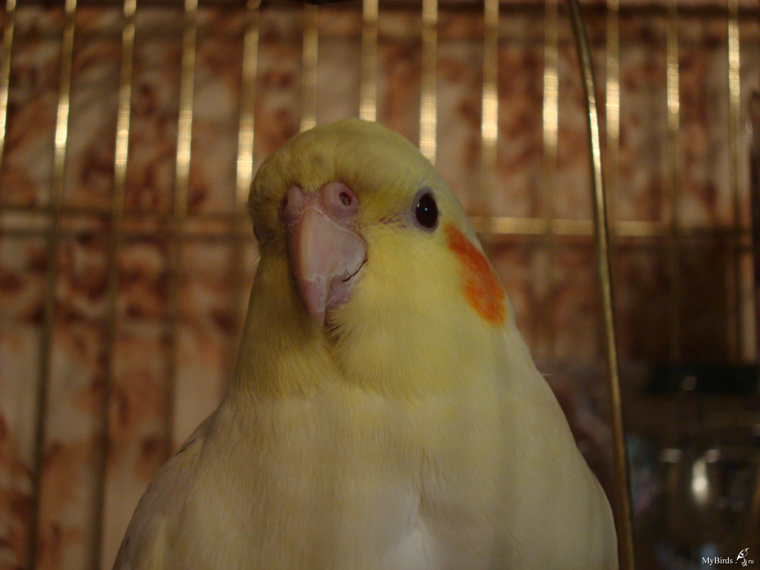 Yuri, спасибо за информацию. Вот фотка крупным планом. Глазки у Флинта всегда такие, конюктивита нет (знаю что это за заболевание). Купила я птичку в августе 2008г. Кушает Падован, витаминки, овощи-фрукты, кашки, иногда яичко. Птица активна, поёт, глазки не чешет.