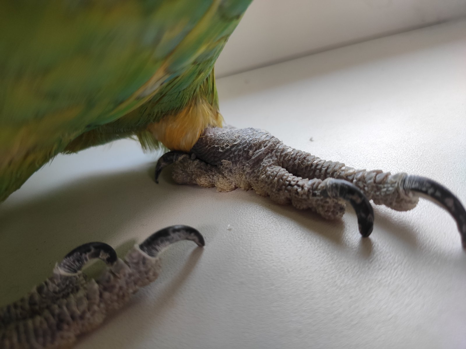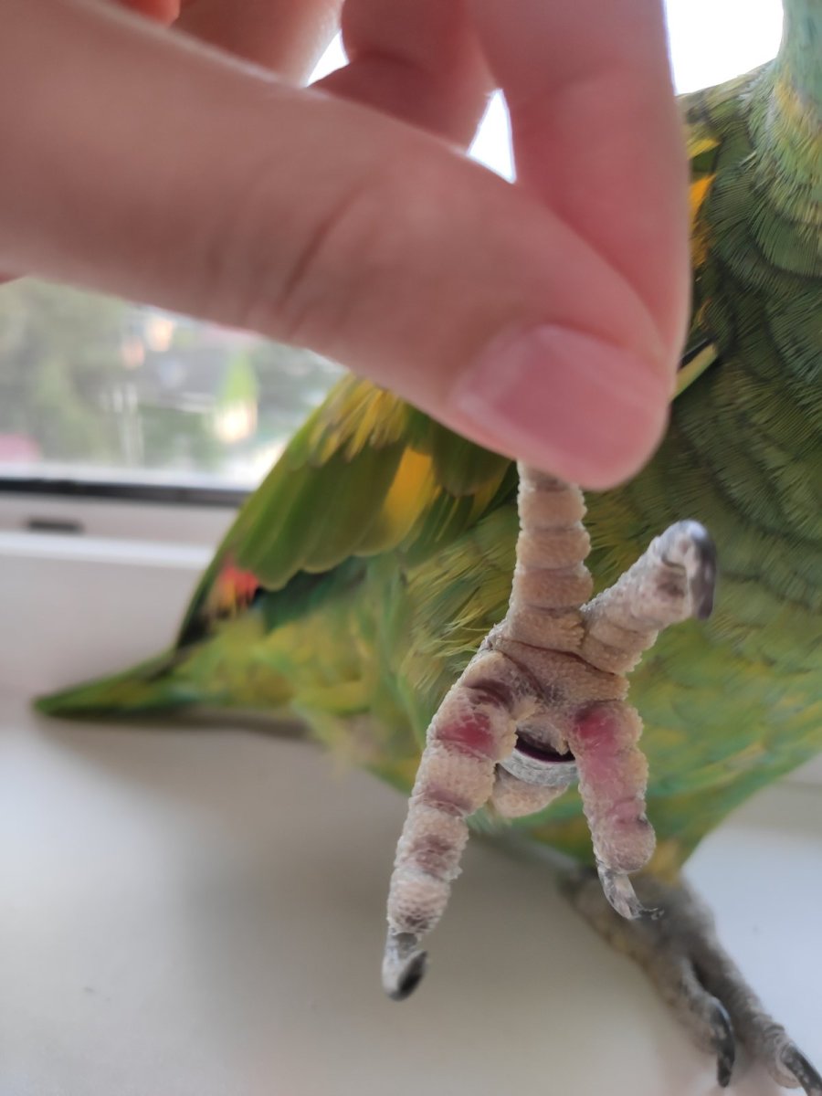 Tnknv Опубликовано 1 июля, 2024 #1 Опубликовано 1 июля, 2024 (изменено) Подскажите, пожалуйста, что с лапами амазона? Это мозоли или что-то хуже? И нет ли на фото признаков чесоточного клеща? Попугай иногда чешет лапки, иногда сидит на одной лапке, приподнимая и сжимая другую (всегда разную). Жердочки у попуга деревянные, разной толщины, с корой. Есть несколько жердочек гладких, без коры, но на них птица сидит редко и мало. Любит сидеть на клетке, именно на металлических частях: на дверце или на краю крыши. БОльшую часть дня проводит вне клетки или на ней. Пробовали мазать жердочки облепиховым маслом по совету ветеринара, ничего не изменилось. Орнитолога в городе нет. Рацион: корм Grandmix, фрукты, овощи, ягоды. Витамины не даём. Изменено 1 июля, 2024 пользователем Tnknv