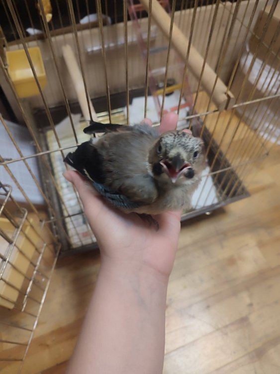 Еленка 82 Опубликовано 3 июля, 2024 #1 Опубликовано 3 июля, 2024 Дома живёт Слёток сойки, прыгал, кушал мясо, куриное филе, фарш, желток, кричал когда подносила еду, пил водичку пока из шприца, прыгал, перелетел с полки на кровать . День назад повредил крыло, или растяжение, крыло немного ниже второго, при перелёте мало подвижно, но потягивается и раскрывает полностью. А вчера вечером птенец прыгал и упал с полки, высота около 50 см, упал на спинку, я сразу подняла его, он испугался, быстро билось сердце, открыт клюв, и долго не закрывался как шок, потом успокоился, но лапки как онемели, встать не может, поджал по себя, хватает но слабо, немного упирается лапкой но если создать упор, весь горячий, крылья расправляет как будто выворачивает их полностью, и пропал голос, давала водичку еле пропищал, клюв открывает, есть не просить когда подносишь как раньше,посадила в коробочку, сделала подушку из ткани как гнездо, пытался махать крыльями, заваливается. Не понимаю что с ним. Помогите 😩, жалко птенца.фото за день до падения. 1