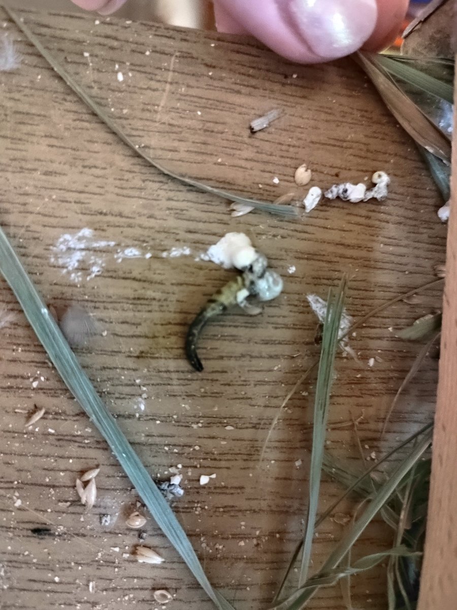 Ptichkina mama Опубликовано 4 июля, 2024 #1 Опубликовано 4 июля, 2024 Добрый день, уважаемые опытные птицеводы!!! Помогите, пожалуйста, столько вопросов накопилось у меня по поводу моих двух амадинов. Два месяца назад приобрели двух птичек. Питаются смесью проса, тертой моркови, молотых одуванчиков, скорлупа и червей сушеных, канареечного семени., иногда цамакс в корм. на дне клетки всегда песок для птиц и трава, в которой они копошатся. Итак, вопросы. Самка с первого дня была гораздо больше самца, какая-то толстая и мало подвижная. В последние пару недель помет стал жидким и белым. Что делать с пометом, если самка купается иногда и в принципе и с нормальным пометом была ленивой? Едят птицы очень мало. Двух чайных ложек за день не съедают. У самца помет нормальный. Спят в тёплой корзинке, причём самец всегда прячется за своей пухлой подружкой, спит под ней. И следующий вопрос - сегодня он резко клюнул белую, она аж отскочила, не ожидала такого от милых птичек, а та стала есть перья. Сидеть после переезда в клетку побольше стали отдельно, раньше прижималась друг к другу. Перышки вроде перебираю, но в основном самка саму. Чего им не хватает? Жил площадь 30*30*60. Прикладываю фото птичек и помет самки и самца....