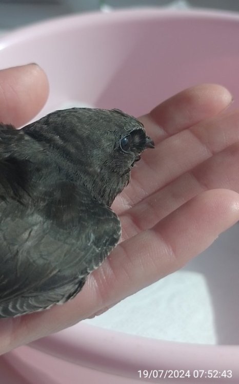 лиил Опубликовано 12 июля, 2024 #1 Опубликовано 12 июля, 2024 (изменено) Здравствуйте. Дети подобрали стрижа. С виду целый, но не летает. С голубями небольшой опыт есть, но не со стрижами. У него во первых редко открываются глазки, и они как будто впавшие , сзади на шейке где холка лысовато у него. Он как будто плохо стоит на ножках. Возможно что это ещё птенец? В длину вместе с хвостиком он 12 см. Водичку со шприца он пьет хорошо, вот чем мне его кормить? Изменено 12 июля, 2024 пользователем лиил