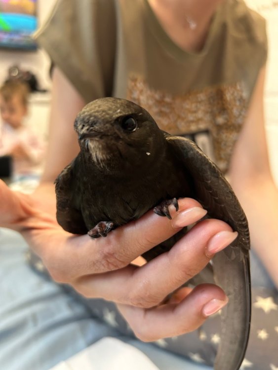 Евгений Викторович Опубликовано 20 июля, 2024 #1 Опубликовано 20 июля, 2024 Стриж на вид взрослый, подобрали на дороге, кормится сверчками. Выхаживать его нет ни сил, ни возможности. Находится в Выборге, но готов привезти его в Питер человеку, который знает что с ним делать и как. Хотелось бы чтобы он все таки полетел, но пока никак не удается это сделать. Весит 37г. Рентген повреждений не показал, но правое крыло все равно странно расположено, хотя вывиха сказали в клинике нет. При попытке взлета падает, хотя очень хочет полететь и шоркается по коробке круглосуточно. Что с ним делать не представляю. У меня он уже 3 недели, крылья длиннее хвоста на 3,5см