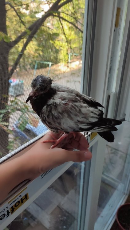 Татьяна Александровна Д. Опубликовано 24 июля, 2024 Автор #4 Опубликовано 24 июля, 2024 Спасибо большое! Простите, что не сразу ответила, только сегодня заметила смс, мне в почте отобразилось как рассылка. К утру все зёрнышки переварились. Хотела описать историю. Нашли мы голубенка 18 июля, сегодня уже седьмой день он у нас. На вид мне показалось, что ему недели три, он уже разминал крылья. Частично голубеныш в перьях, на спинке и животике залысины. В первый вечер не знали, чем кормить, кормили варёным яйцом. Когда его подбирали, вроде клевал немного. Бегал за большими голубями. Сильно истощен, киль заметно выпирает. Со второго дня кормила его детской смесью безмолочной со шприца. Также ему в блюдце насыпала пшено вначале, гречку, варёную и сухую, потом прочитала, что пшено нельзя. С воскресенья, уже четвертый день, кормлю кормом для попугая, голубенок очень его любит. Также третий день колю птенца глюкозой с рингером, два раза в день по 2-3 кубика. Клюет сам и воду сам пьет. Меня беспокоит, что киль все ещё очень выпирает или за неделю он ещё не успел поправиться? Очень худой, при том, что аппетит хороший.