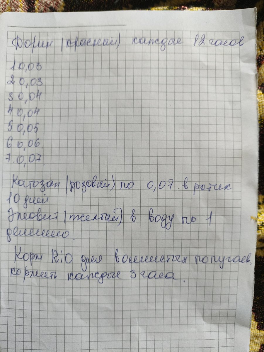 CoseLove Опубликовано 20 августа, 2024 Автор #11 Опубликовано 20 августа, 2024 @ната1805 дорин каждые 12 часов в ротик и дозировка по дням Катозол по 0,07 в ротик 10 дней Элеовит в воду по одному делению. Корм Рио для волнистых попугайчиков Он Пискун был ещё сказала то что нужно.