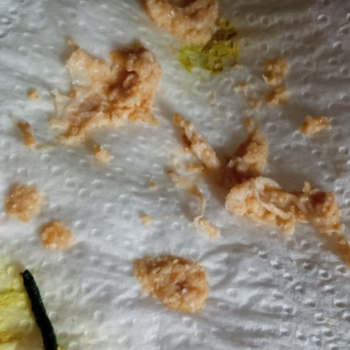 Ольга_с Опубликовано 9 октября, 2024 Автор #56 Опубликовано 9 октября, 2024 @маленький принц С утра дала нистатин, после кашу запаренную пшенично-овсяную негустую, гепатовет, бифидумбактерин. Спустя 4 часа вырвало. Помёт был, но скудный. В рвотных массах какие то плёнки светлые, причём достаточно много (пришлось поковыряться, на 2 и 3 фото их хорошо видно). Зоб на ощупь стал более тонкий, до этого не могла понять, то ли остатки еды (даже после длительного перерыва в кормлении) и не пластилин вроде, а как будто стенка зоба толстая, толще чем у другого. Сейчас после рвоты более мягкий.