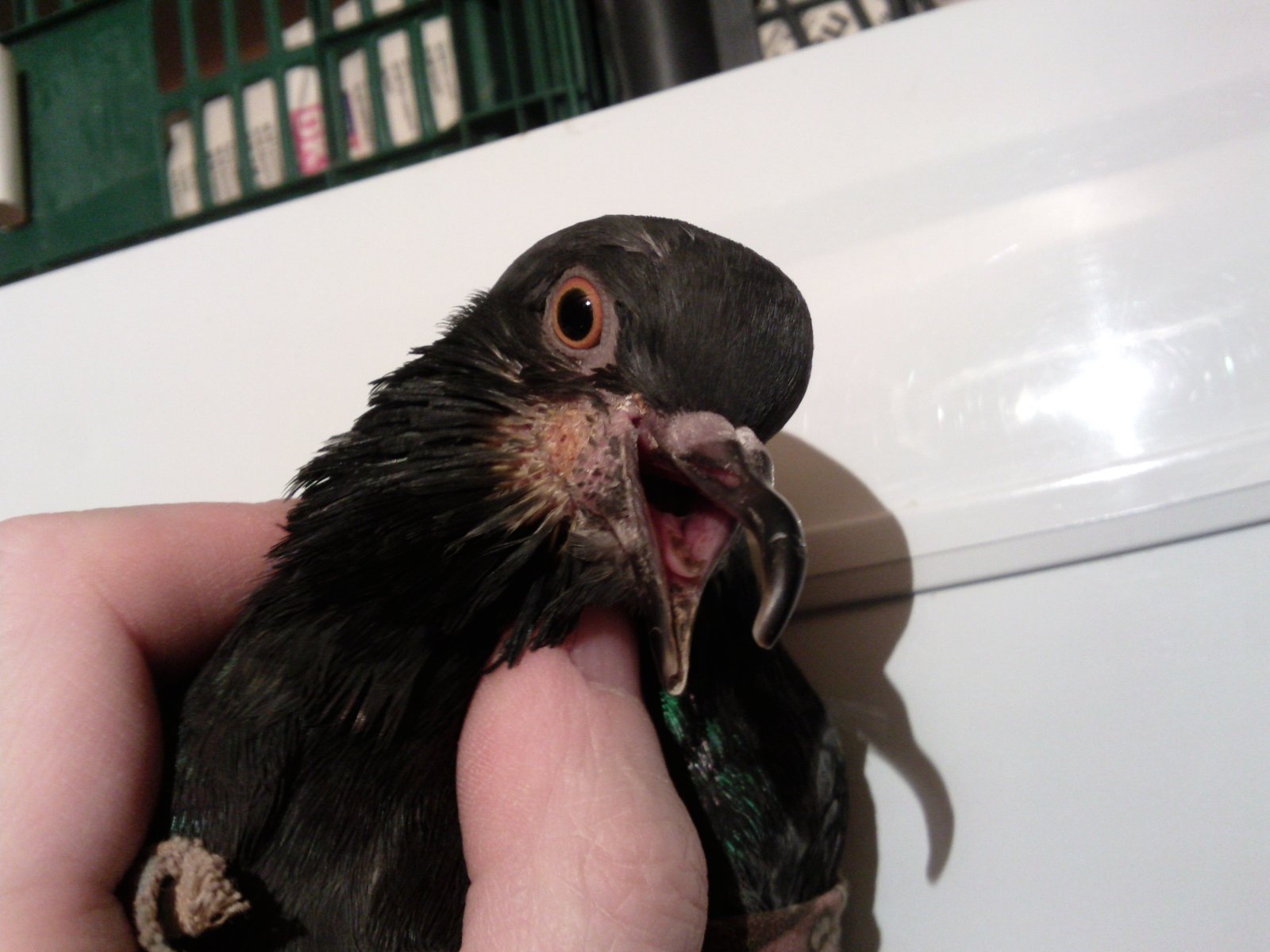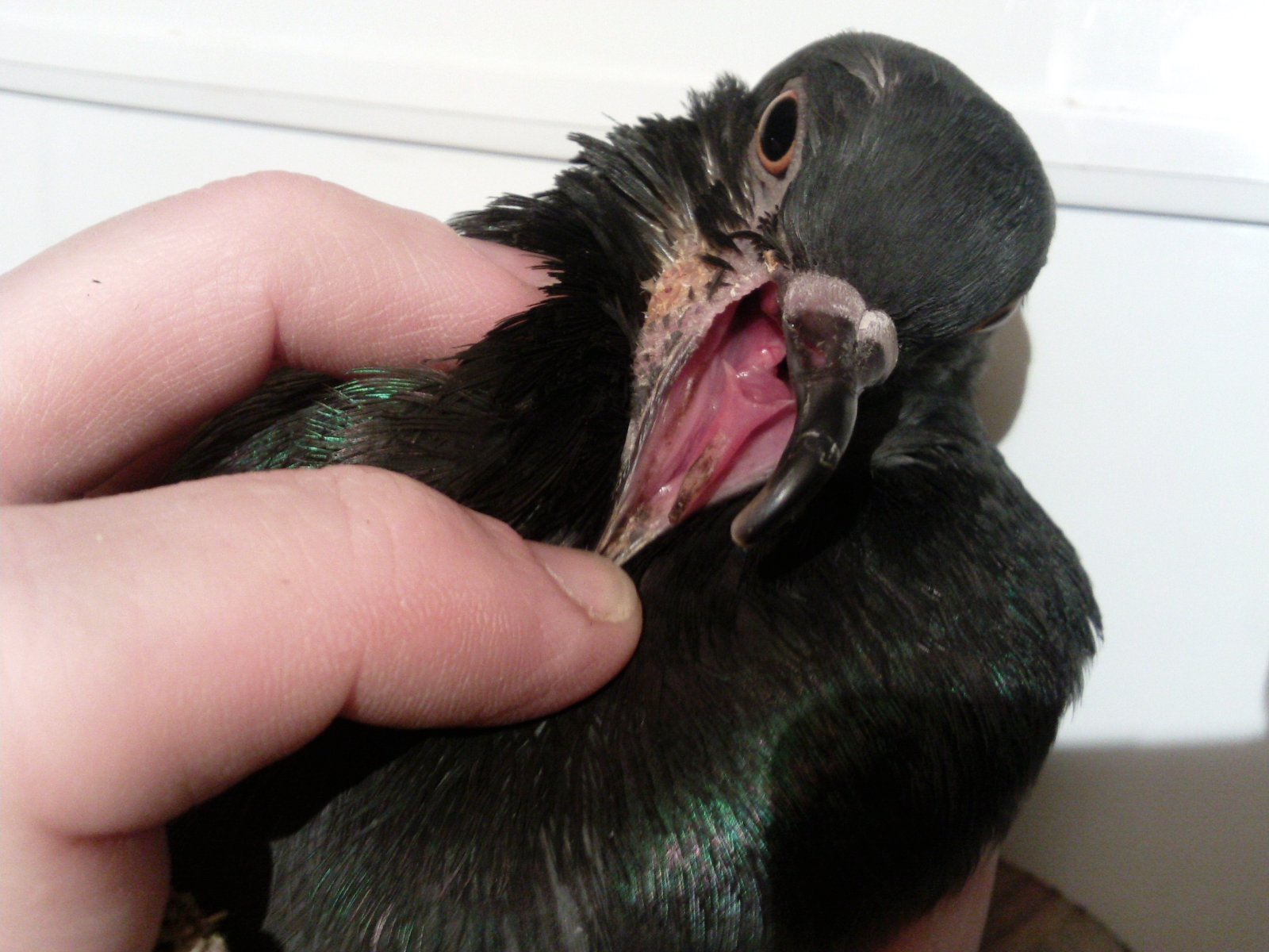 маленький принц Опубликовано 23 марта, 2025 #87 Опубликовано 23 марта, 2025 в трахее? где именно жидкость если зоб переполнен водой и она подступает к горлу СРОЧНО ВНИМАТЕЛЬНО читайте В 16.04.2021 в 21:08, Arthur сказал: Привет всем! Делюсь своим опытом использования катетера при непроходимости зоба. 1. Создание катетера. Для катетера необходимо использовать шприц объёмом не менее 5 мл. Также необходимо найти женский уринальный катетер Нелатона, но может подойти и другой тонкий и эластичный катетер. Необходимо отрезать часть катетера, чтобы он был не менее 20 см (для взрослого голубя не менее 25 см). Также желательно, чтобы катетер не был сильно загнут и был более менее прямым, но при этом был эластичным. На одном из концах катетера нужно вырезать "ласточкин хвост":, ВАЖНО! Нельзя допустить образование острых концов на катетере, они могут поцарапать пищевод и зоб! Другой конец необходимо присоединить к шприцу. Если катетер не налезает на шприц, то необходимо сделать надрезы на этом конце, и присоединив к шприцу с помощью совсем небольшого количества скотча, хорошо заклеить пластилином для большей герметичности (следует размять пластилин, чтобы он стал мягким, после герметизации катетера пластилином можно дать ему немного снова затвердеть). Проверить работоспособность катетера можно просто попробовав набрать в него воды. Если вода не набирается, или набирается плохо, то значит надо лучше загерметизировать катетер. 2. Использование катетера. Для большей безопасности Вам необходим помощник, который будет просто держать голубя: 1) Если в зобу жидкого немного: (1) Впаиваем в голубя 4 мл воды и аккуратно массируем зоб (перемешиваем содержимое зоба). Можно заливать воду через катетер, тогда его не надо вытаскивать, массируем зоб вместе с катетером. Но мне показалось, что удобнее заливать воду в клюв с помощью инсулинового шприца, так как длительное нахождение катетера в зобе/пищеводе, очень сильно не нравится голубю: набираем 1 мл воды в шприц, аккуратно выпрямляем шею у голубя, вставляем шприц в клюв (до отметки 40-50 IU), вводим 1 мл воды в голубя, повторяем 3-5 раз (зависит от свободного места в зобу), массируем голубю зоб. ВАЖНО! держим голубя вертикально ВСЕГДА, следим, чтобы вода не выливалась из клюва при массировании зоба. (2) Помощник: должен взять голубя в "букетик" и держать его ВЕРТИКАЛЬНО, на зоб давить нельзя! Помощник не должен держать за зоб. Вам: Осторожно вытягиваем шею голубю, аккуратно вставляем катетер. Делаем это медленно, ВАЖНО, что бы катетер не зацепился за стенки пищевода и не поранил его! Если катетер упирается в стенку пищевода, то не толкаем дальше, а чуть-чуть вынимаем катетер и пробуем провести его под другим углом. Для большого удобства шприц можно взять в зубы, потому что двумя руками вставлять катетер удобнее. Вводим катетер до тех пор, пока он не окажется в зобе (можно очень аккуратно прощупывать катетер, пока он идёт по пищеводу). Когда катетер упрётся, необходимо чуть-чуть его вытащить (поднять на ~1 см), это нужно, чтобы катетер не прикасался к стенкам зоба и не порвал его. Медленно начинаем выкачивать содержимое, при этом нужно после каждого выкаченного миллилитра, немного передвигать катетер вверх/вниз, чтобы точно избежать присасывания к зобу. ВАЖНО, следите, чтобы вода не выходила через клюв, чтобы голубь не захлебнулся, не давите на зоб! Н