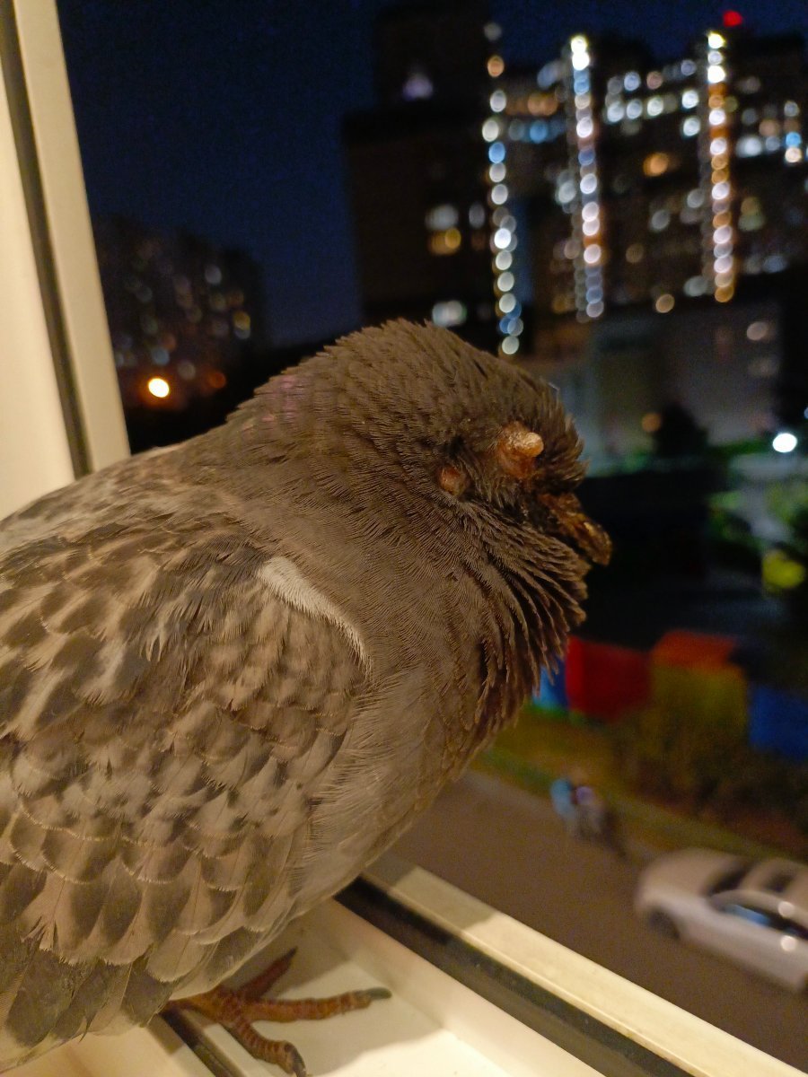 Nadya6 Опубликовано 18 сентября, 2024 #1 Опубликовано 18 сентября, 2024 Здравствуйте! Уже не хотела подбирать голубей, переехала в Москву, а тут голубь залетел прямо на открытое окно 3 этажа. Глаз закрыт и на нем какой-то нарост+такой же нарост на шее. Второй глаз видит. Насыпала еду - не ест. Голубь видно, что подросток. Из клоаки свисает кал. Кал вроде бы с кровью. Сняла с окна, голубь даже не сопротивлялся.