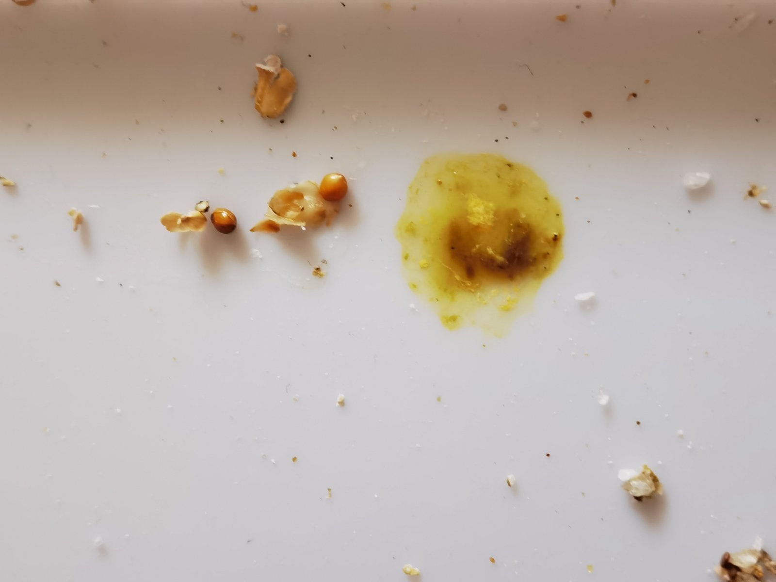 wwojpwh Опубликовано 17 октября, 2024 #1 Опубликовано 17 октября, 2024 (изменено) Через 2 дня после того как привезли из магазина, при мытье клетки заметила что у попугая все грязное в области клоаки, на поддноне был понос коричневатого цвета, начала изучать, добавила 1/4 таблетки угля активированного в корм размолотую, наверное что то поклювал, тк на следующий день были сформированные экскременты черного цвета но вместе с тем и понос тоже сохранился в итоге. на следующий день уже был зелёный понос, не прям водой, я бы сказала как слизь густоватая, попугай активный бегает, кушает зерно все эти дни, записались на онлайн консультацию в вет клинике, врач орнитолог сказала что лучше приехать для осмотра птицы и взять анализ кала, а пока дать энтеросгель 0,2 мл, вечером и на следующий день утром, за или после 2 часов от еды, так же церукал 10мг 1/33 таблетки, 0,1 мл, вечером дали как она сказала, пришлось аккуратно достать попугайчика, но сразу после того как назад в клетку посадили началась рвота зернами у него (мне кажется как то неправильно через шприц я ему ввела может поэтому (( ), сегодня утром уже цвет какой то коричневатый у поноса, капнула перекись она немножко совсем шипит, но я этого момента вообще не понимаю, как точно определить есть ли кровь, еле заметное шипение об этом свидетельствует, или она должна активно шипеть? Изменено 17 октября, 2024 пользователем wwojpwh