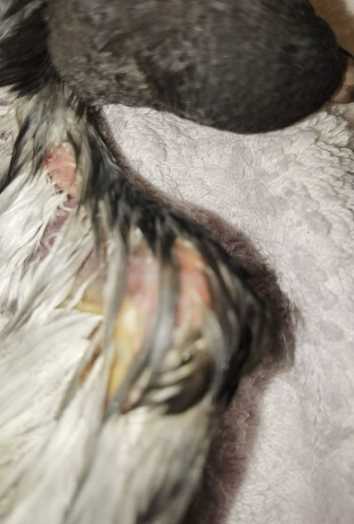 Пересвет7 Опубликовано 27 октября, 2024 Автор #7 Опубликовано 27 октября, 2024 @Пересвет7 Сфоткал, шишка более твердая стала, вдоль кости гнойное что ли желтизна. Шишка теплая, прям на стыке, крыло свисло сильнее обычного, но при этом ранее так не было и он у меня две недели в квартире, и не летает, максимум крыльями помашет или со шкафа на шкаф перелетает. Аппетита нет, приходится через зонд кашу так и давать. 1