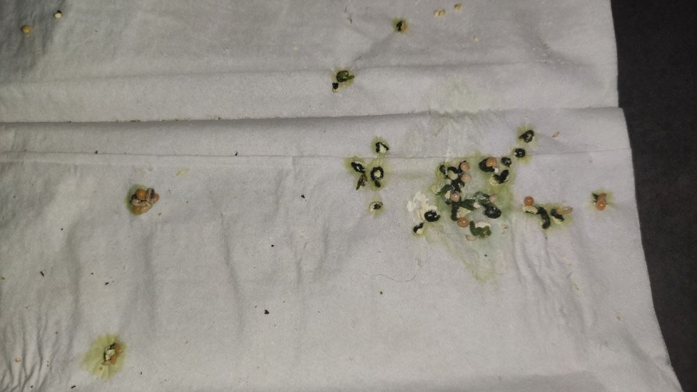 valami Опубликовано 17 ноября, 2024 #1 Опубликовано 17 ноября, 2024 1. Вид птицы: волнистый попугай 2. Возраст и пол: 7 лет, самец 3. Рацион: сейчас год ест местный австрийский, где просо и овёс, но овёс он как и всегда выбрасывает. Также появился у меня наш "silver корм для волнистых попугаев просо", хотела перевести на него после того, как этот закончится. Фрукты и овощи не ест, изредка яблоко или огурец может. Со стола редко могла угостить, но как заболел не даю совсем. Сейчас стал кушать меньше, сам реже к кормушкам подходит, в основном ест когда выходит из клетки и я его кормлю из баночки, в которой содержится остальная часть корма. Минеральный камень в клетке всегда есть, витамины не даю. 4. Условия содержания: длина светового дня 11-12 часов; высота клетки без поддона 41 см, ширина 28 см, длина 18 см; клетка находится в спальне, спальня это солнечная сторона, угол комнаты, на рабочем столе возле компьютера, не вплотную к стене, всегда сзади клетка прикрыта, чтоб не шел холод от стены или от окна на всякий случай; температура в комнате 22-23; влажность 50-55. 5. Симптомы: стал больше спать и меньше активничать, однако всё равно проявлял активность изредка и чирикал, поэтому подумала что готовится к линьке. Однако когда протянула к нему палец чтоб потрогать, чему он всегда возмущается, то услышала нехарактерный для него писк. По итогу теперь писк слышится чаще, не только когда пытаешься потрогать его, а и иногда когда тянется поесть из кормушки, иногда когда отдышка, иногда когда спит. Выделений из носа нет. 6. Как давно болеет: 3 недели Видео писка: https://youtube.com/shorts/wKYAaWjZadE?si=5YEsiF4BHDqDFwvg Первые два фото - помёт с утра 16.11.24. Два следующих фото - помёт с утра 17.11.24. Свежий помёт не черный, а зеленый, это за сутки просто засох.
