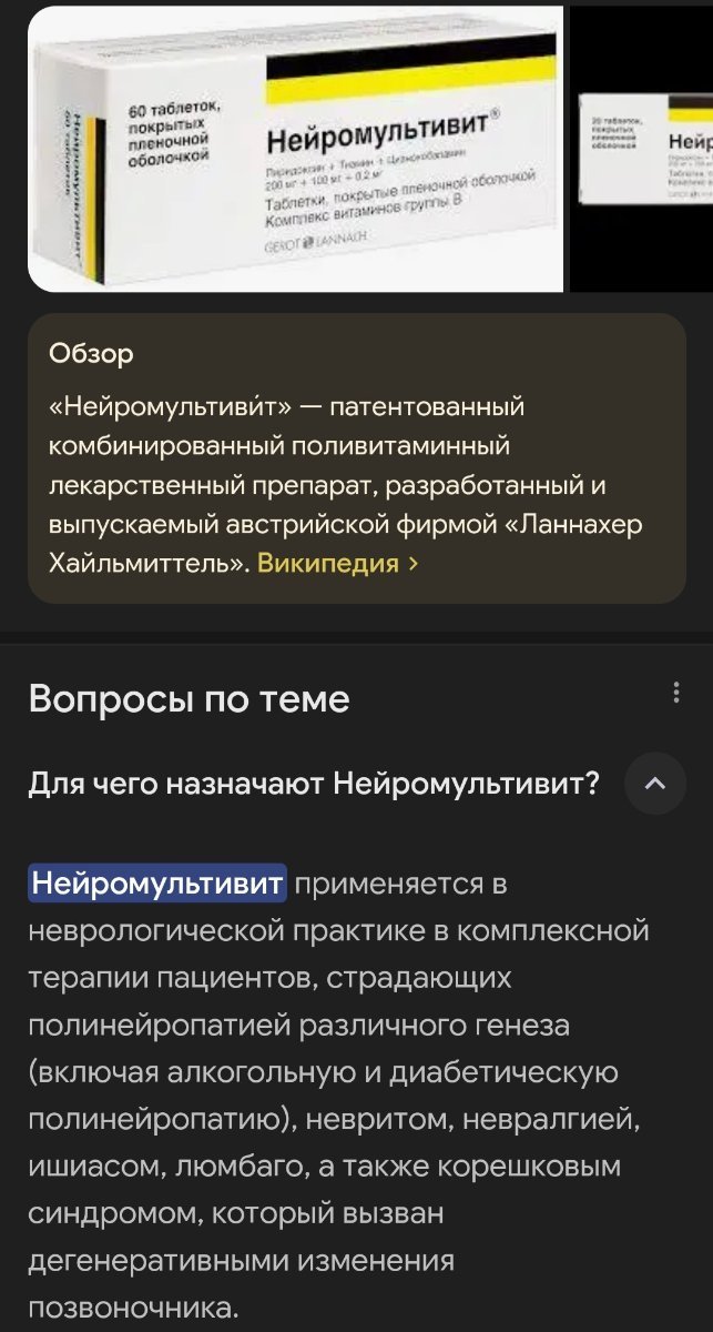 Почитайте, пожалуйста, про нейромультивит, о котором писала Офа, он не имеет ничего общего с обычными витаминами! И её рекомендация затрагивала только данный препарат.