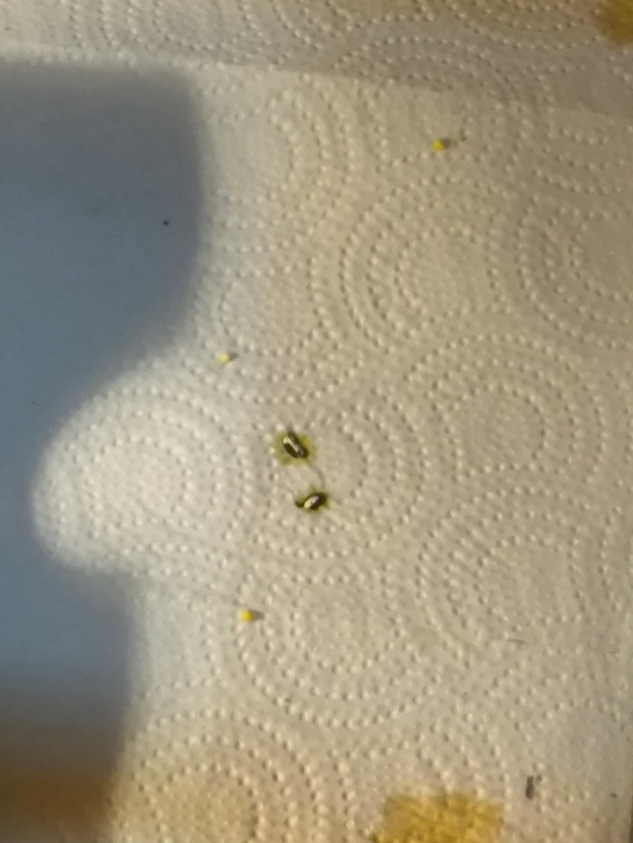 АнастасияВаганова Опубликовано 29 ноября, 2024 #1 Опубликовано 29 ноября, 2024 1. Вид птицы - волнистый попугай 2. Возраст - полгода; Пол - мужской 3. Корм РИО, веточный корм (Яблоня), иголки, салат зелёный (Из магазина Магнит), клевер (Собирали по городу) 4. Содержится с другим волнистым попугаем (в возрасте старше на пару месяцев, мужской пол, на данный момент линяет), световой день - 10 часов 5. Стошнило зёрнами, после чего сходил в туалет жёлтой жидкостью (Месяц назад у второго попугая было похожее: стошнило зёрнами, пять дней поили ромашкой, уменьшили количество корма, тогда у него прошло), много пьет 6. Болеет 1 день 7. Дали ромашку в поилки (1 чайная ложка на стакан) Прикреплено фото помета (2), он такой всегда Прикреплено фото жидкости (1), которой сходил больной попугай
