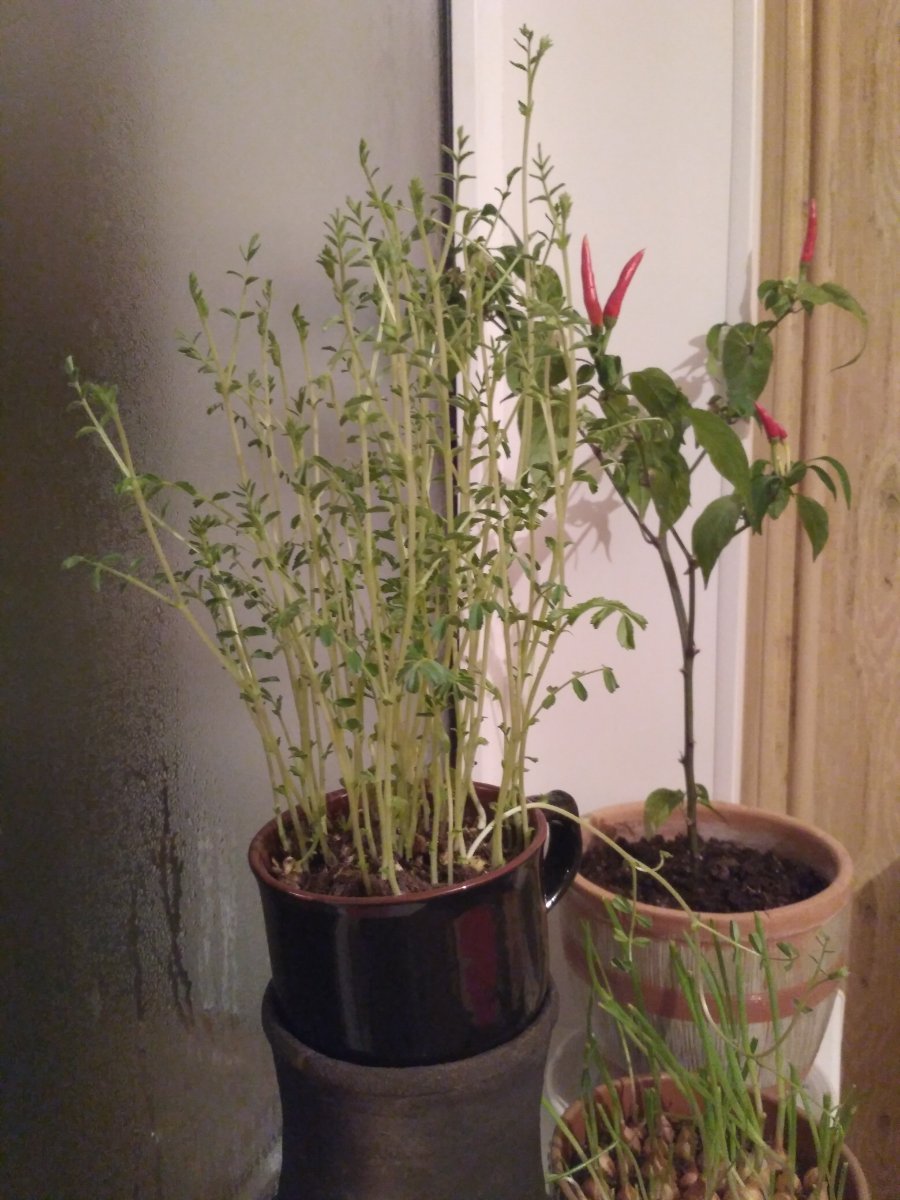 Зелень разную пробую давать безрезультатно, прижился в меню только нут, его понемногу едят. Ростки нута режу кусочками размером с зерно.