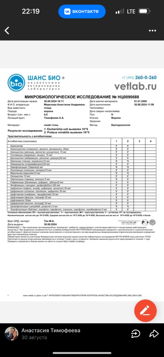 Настя6637 Опубликовано 7 декабря, 2024 #1 Опубликовано 7 декабря, 2024 Добрый день.Скажите пожалуйста нужно лечить такие анализы у вороны? Ккал у вороны в сентябре был зеленоватый,теперь (декабрь) постоянно белый с оранжевой серединой.В повелении ничего не поменялось.Кушает курицу,нежирную рыбу,творог,каши,креветки,сущие червячки.Оаощи и фрукты не любит…