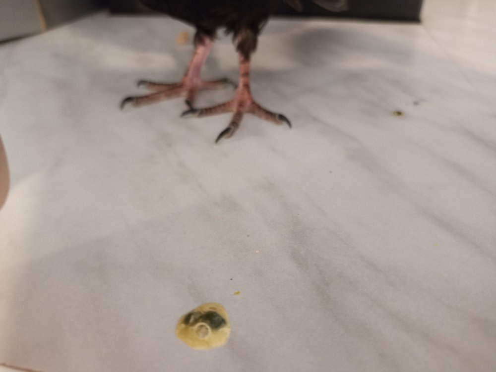 Наталья595 Опубликовано 16 декабря, 2024 Автор #8 Опубликовано 16 декабря, 2024 Покормила птенца в 18:30. Фото помёта в 21:30. ( в принципе помёт последние дни такой всегда). Сейчас 22:50, т.е. прошло 4 ч20 мин, а зоб полон наполовину ещё. Кормила сухим зерном 1,5 ч.л. (перловка+ гречка). Срыгивания не было. Это ведь не норма? Оставлять флуконазол 0,25 или все-таки 0,2 давать? Или может давать 3 раза в день по чайной ложке? Киль не тощий, сбоку мышцы. Ещё он мало пьёт. Только после приёма лекарств стягивает немного воды с ладони и ещё может 1-2 раза за день по глотку. Насильно не даю через шприц. Из поилки совсем не пьёт, видимо потому, что нос мокнет. Что касается глазика. Он прошёл на 3 день после начала юнидокса. Ранка во рту тоже. Сейчас абсолютно здоровый глаз и рот. Сколько мне давать юнидокс, сегодня получается ровно 7 дней. Никаких других респираторных признаков не было и нет. Спасибо за ответы 🙏
