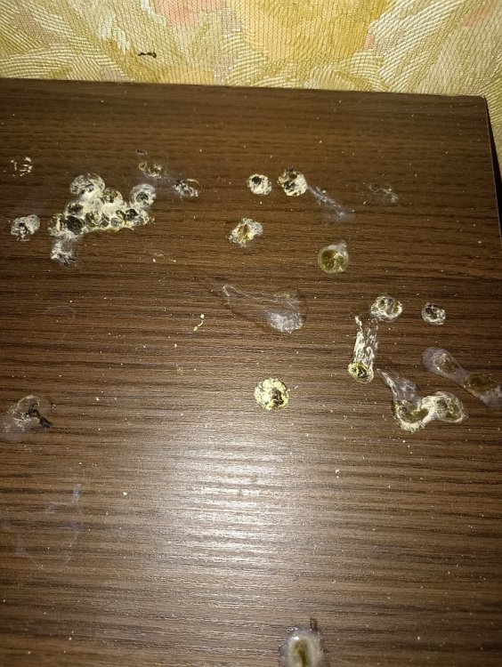 Наталья595 Опубликовано 18 декабря, 2024 Автор #19 Опубликовано 18 декабря, 2024 Ночью рвоты не было (еды было 1 ч.л. всего).Утром зоб был пустой, лишь немного воздуха, который ушел при прощупывании зоба. Покормила голубенка часов в 10 утра, 2 ч.л. вообще без верха зерна, дала все лекарства, отправила его на шкаф и минут через 15 он всё срыгнул. Зоб стал пустой. Несколько зёрен гречки (штук 5), уже набухших, вышли совсем недавно. По вашей рекомендации накатала небольших шариков из разной дробленки, дала штук 10 и отправила на шкаф, там он минут через 5 срыгнул один шарик. Я не знаю что делать. Если раньше голубенок постоянно чистился, то сейчас больше отдыхает. Помёт тоже стал скудный. Очень прошу Зосю или Кабреру дать совет. На фото ночной помёт, срыгнул зерна, шарики из варёной дробленки и маленькая кучка последнего помёта