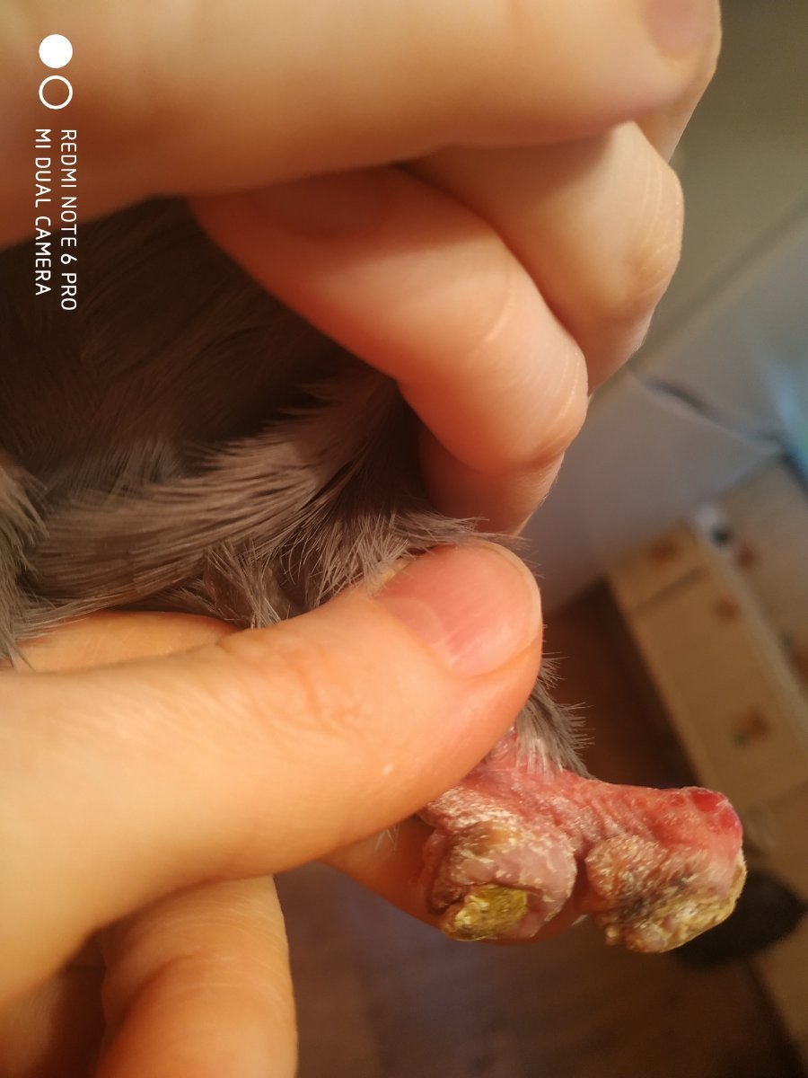 маленький принц Опубликовано 21 ноября #93 Опубликовано 21 ноября 21 час назад, Людмила_М сказал: Есть еще один неясный симптом: уже несколько недель веко на левом глазу как бы припухшее. Это видно, если сравнивать с правым глазом (а с ним все в порядке). И при моргании левое веко как бы запаздывает по сравнению с правым. - очень осторожно (давая отдышаться) осмотрите и ощупайте горло (в том числе под клювом) нет ли наростов или налёта - очень осторожно (не задушите!) проведите пальцами вдоль вдоль шеи нет ли шишек и наростов - очень осторожно (давая отдышаться) проверьте тоненькой ватной палочкой нет ли во рту вязких слюней или слизи - осторожно нажмите на восковицы (мешочки над клювом) не полезут ли сопли - послушайте спинку чтобы приоткрыл клюв сам осторожно нажмите под нижней челюстью (дальше клюв можно осторожно так чтобы не сломать открыть руками) ВНИМАНИЕ твёрдые наросты НЕ отрывать! птица может захлебнуться хлынувшей кровью 21 час назад, Людмила_М сказал: левая нога без ступни – он ходит, получатся, на цевке. На цевке образовалось два крупных натоптыша , и на фото видно, что местами под кожей натоптышей синяки и что-то желтоватое (такое изменение тканей произошло после лечения в январе этого года). сам сустав цевки не распухший?