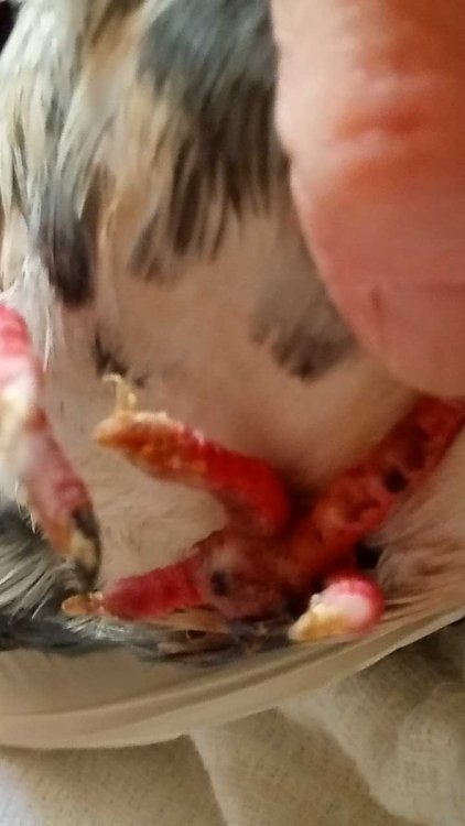 Второе фото - пальчики с ладонной стороны, где я своим пальцем держу самый длинный пальчик. Это левая лапка, большой черный нарост с левой внешней стороны, на фото снизу виден.
