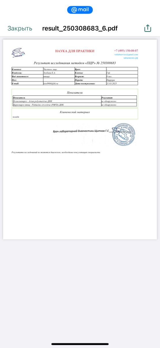 Пришли результаты анализов на цирковироз и полиамовироз-не обнаружено ни у Гая ни у Юлия🥳!!!! Ура , ура, 🥳 … через три месяца пересдам на всякий случай😎 ибо не обнаружено не значит что точно нет, капец конечно, но такова жизнь))) Но я уже счастлива-очень боялась… даже уже мысленно настраивалась на усыпление😭