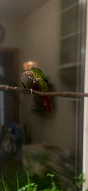 @Zlobinaka , пиррура явно не был в птенцов возрасте в момент приобретения.. Переросший клюв может  указывать на неправильное содержание (при отсутствии минеральных камней, часто заменяемых веток разрешенных пород , спец погрызушек и пр), проблемы с печенью, с обменом веществ.