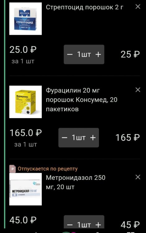 маленький принц Опубликовано 21 апреля, 2025 #157 Опубликовано 21 апреля, 2025 Смесь №3 Цитата Смесь №3 сухая стрепцотид+фурацилин+метронидазол присыпка + в некоторых случаях (уточнить) цефтриаксон 12 минут назад, Вадисла сказал: Для смеси 1 и 3 подтвердите правильные ингредиенты? Цефтриаксон для 3 в порошке уже есть. да подходит но для Смеси №1 нужно пересчитать пропорцию 1
