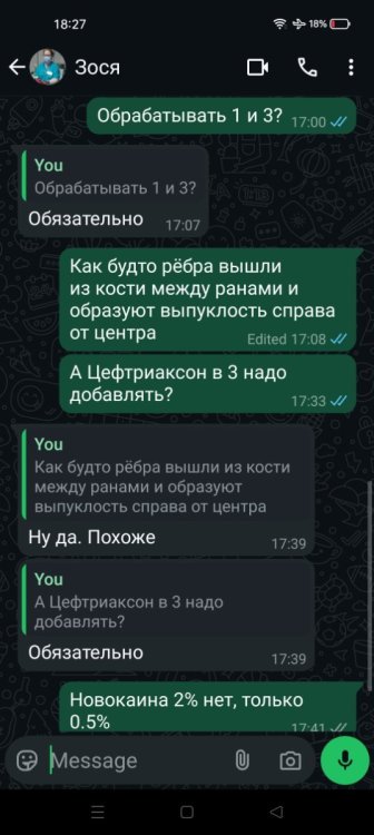 МАККА Опубликовано 21 апреля, 2025 #158 Опубликовано 21 апреля, 2025 @Вадисла я так понимаю что ты изначально не мазал ничем кроме левомиколи ..только ципро давал ..хотя Зося сразу тебе сказала обрабатывать смесями даже не купил ничего 1