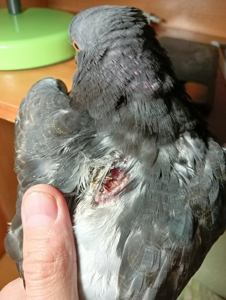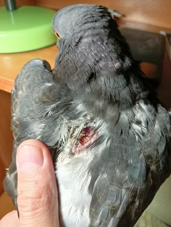 Вадисла Опубликовано 1 июня, 2025 Автор #227 Опубликовано 1 июня, 2025 (изменено) Молодой гауляйтер прилетел после дня отсутствия. Не летает, левое крыло висит. На спине рана. Намазал левомеколем. При ходьбе высоко поднимает правую лапку. Похоже на кота. Как долетел до 5 этажа загадка. Крылья связал изолентой. Вколол 0.1мл цефтриаксона. Крыло осмотрел ничего не заметил, мож вывих. Изменено 1 июня, 2025 пользователем Вадисла 1