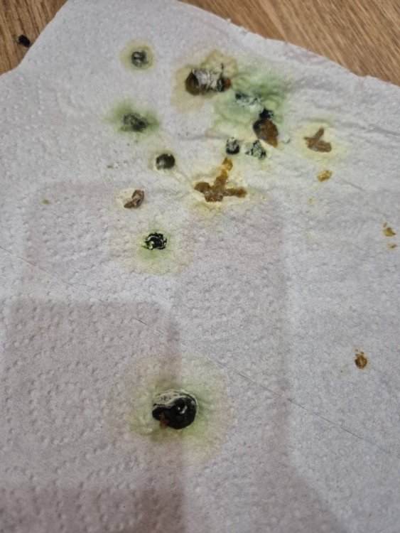 Shaman_2010 Опубликовано 7 апреля, 2025 Автор #3 Опубликовано 7 апреля, 2025 (изменено) И вот такой помёт за ночь. Воды стало меньше. Сегодня, когда дали лекарства и посадили в клетку, по ощущению и визуально, привстала на лапки по увереннее. Изменено 7 апреля, 2025 пользователем Shgaman_2010 1
