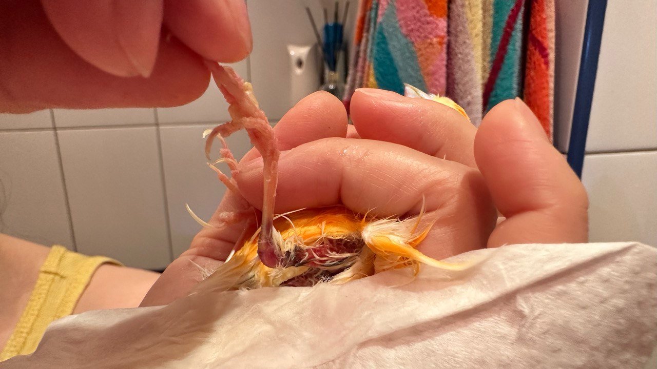 Елена Ямальская Опубликовано 13 апреля, 2025 Автор #12 Опубликовано 13 апреля, 2025 @tasibai да. мы заметили, что в рекомендации указан вес волнистика. Дозу уменьшили до капли. Вспомнили ещё, что 4 марта, при лечении лапок вырвался из рук и начал летать по кухне. Ударился об стену и рухнул камнем между стеной и холодильником. Кое как вытащили, но с перепугу не осмотрели. Очень испугались, были в шоке, что руки дрожали. Вроде и вел себя после лечения нормально, ничего подозрительного не заметили. Кушал и вёл себя очень активно даже купался каждый день. Только обратили внимание, что пел, не как все кенары вытягиваясь ввысь, а согнувшись. Только сейчас заметили, что у него видимо с тех пор травма серьезная, и лапа, и весь бок уже потемнели. Упущено очень много времени. От боязни и незнания теперь предстоит серьезное лечение. И дай Бог здоровья и терпения нашему любимому Персику, а нам сил справиться с этими трудностями. Огромное спасибо всем, кто откликается и подсказывает нам неумёхам, что и как делать. Сегодня утром пел, но не так продолжительно, как было раньше, кушает и даже немного искупался. При обработке сделали ещё фото. Постригли когти. Сегодня вечером перед сном ещё обработаем больное место мазями (1 горошинка Мелоксикам + Траумель С) и дадим лекарства для обезболивания (по 1 капле травматин + Ибупрофен детский) в клюв. Это все лекарства, которые нашли в нашем маленьком городе. Подскажите, после того, как мы вспомнили, что он ушибся об стену, нам всё равно необходимо делать рентген, или не травмировать лишний раз птицу, а просто лечить ушиб?