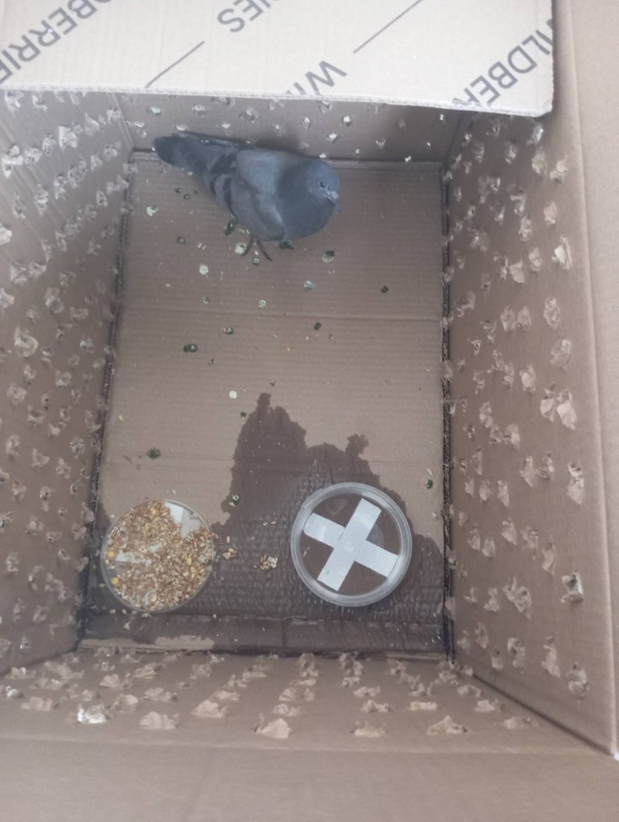 DisRicardo Опубликовано 26 апреля, 2025 #1 Опубликовано 26 апреля, 2025 (изменено) Услышал писк выходя из супермаркета, отобрал очень вялого голубя у трёх кошек которые с ним игрались. Кошкам отдал взамен макароны по-флотски. На крылышке запёкшаяся кровь, предположительно укус кошки. Воспаления не вижу, осмотреть нормально не даётся машет крыльями. В первый день был очень вялый, только лежал, сейчас взбодрился, ходит по коробке, шуршит, вырывается при кормлении и даче лекарства, машет крыльями. Вылетает из коробки если неудачно её открыть делает небольшие перелёты по комнате, убегает, прячется под мебель. На мой непрофессиональный взгляд - совсем ребёнок, восковица не оформилась, размер тела маленький, мы только пищим, ворковать не умеем, кое-где ещё торчат жёлтые волоски но не очень много. Когда его трепали кошки на деревьях суетились и кричали птицы, возможно мама и папа. Начал давать Ципрофлоксацин из-за подозрения на укус кошки, но не сразу, а на вторые сутки, потому что не знал изначально что это нужно делать. Ципрофлоксацин четвертинку от таблетки 250 мг развожу в 2 мл воды, даю из шприца без иглы в глотку 0,25 мл утром и 0,25 мл вечером. Наростов и слизи не наблюдаю. Оперение кажется нормальным только на груди немножко взъерошенное бывает. Слизистые в клюве чистые. Глазки нормальные. Стоим смело ходим по коробке, только совсем чуть чуть то ли дрожим то ли покачиваемся, этот симптом не ухудшается. Стул изначально был оформленный, сейчас как на фото, небольшой зеленоватый оттенок. Насыпал 2 столовые ложки смеси овса без шелухи, пшеницы, перловки, немного колотого гороха и подсолнечных семечек. Поставил воду чистую из магазинной бутылки в неглубоком контейнере. Зерно не видно чтобы особо убавилось за сутки, залил его водой, всё равно не вижу чтобы клювал. Однако мы всё же чем-то какаем, хотя прошло уже 3 дня с поимки. Покормиться насильно, завёрнутыми в полотенце, у нас получилось 2 раза понемногу зерном смоченным водой. Дальше мы так начинали нервничать что кормёжку приходилось останавливать. Мы врываемся, трясём клювом, выплёвываем семена, приходится придерживать клювик, чтобы проглотил. Сейчас запарил столовую ложку зерна заранее, постараюсь спихать в него хотя бы чайную ложку. Вопросы: 1) Продолжать ли антибиотик все 7 дней, или я только хуже делаю малышу, поскольку первая доза была введена очень поздно и если бы у него была Пастарелла, он бы скорее всего не дожил бы до антибиотика? Или это может только анализ показать? 2) Нужно ли прямо точно добавить что-то прям мега обязательное из лекарств, или это может сказать только ветеринар орнитолог после анализов? 3) Продолжать ли кормить насильно, или максимально пытаться научить самого клевать? Правильно ли что кормлю зерном? Вроде же он не на столько маленький чтобы нуждаться в каше или желтке? 4) Как определить пьёт ли птица или нужно вливать воду маленькими порциями в клювик через шприц без иглы? При кормлении распаренным замоченным зерном, если птица дополнительно всё так не пьёт, всё равно нужно поить принудительно или влаги в зерне достаточно? Пытался окунать клювик в воду. Когда только кончик в воде - ноль реакции, стоит опустить чуть глубже - отряхиваем голову, разбрызгиваем воду 5) Если у голубя будет всё хорошо, то какие перспективы выпуска? Его нужно выпустить как можно скорее, или же дождаться пока н