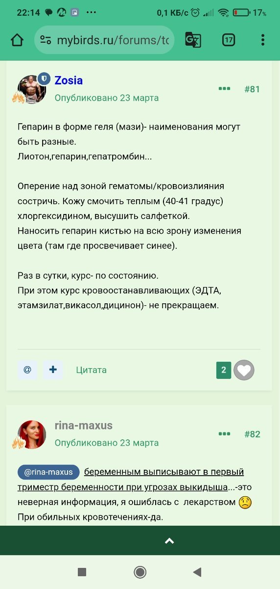 @rina-maxus @маленький принц @Budgiek @Cabrera Кровопотеки такие после двух уколов только стали, делал по инструкции как тут указали но опыт сами понимаете нулевой. А вот поносит она сейчас знатно аж струей. Хотя ставлю укол и даю нистатин. Кушает то что и все корм смешанный. На озоне надо дозаказать овес и гептрал для нее отдельно. Но я так понимаю надо чем то мазать эту гематому?