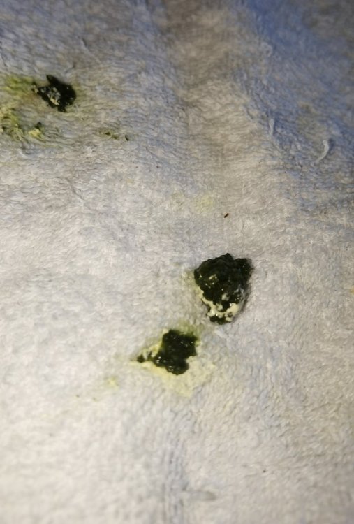 Пересвет7 Опубликовано 29 мая, 2025 Автор #209 Опубликовано 29 мая, 2025 @Cabrera В шкафу птенец, которого хотели крысы сьесть, тоже шея иногда вертится, есть сам не умеет, папа и мама видно погибли от НК. Желтое пятно пока есть не уходит...Вчера один раз получилось покормить, сегодня почти 20 мл скушала через зонд, видно что есть аппетит, ходит ищет зернышки на кровати. Помет вот такой за вечер и сегодня: @Cabrera А фоспренил колоть или спаивать два раза в день надо? Улучшения у всех есть, летать только не умеют до сих пор, я им даю более 15 дней антиибиотик ципрофлоксацин и нистатин, может уже убирать и оставить гепатовет и то что от вертячки?