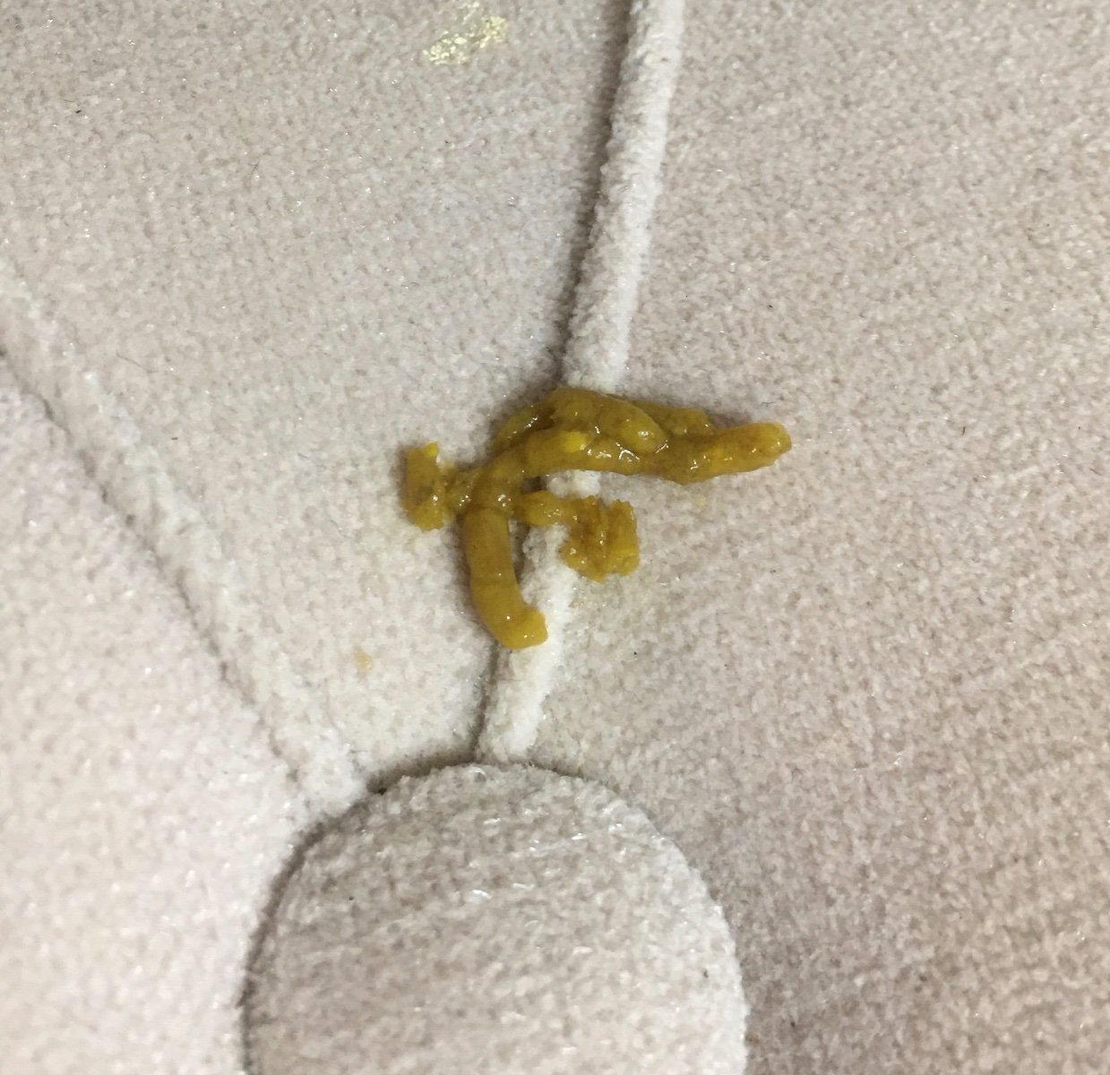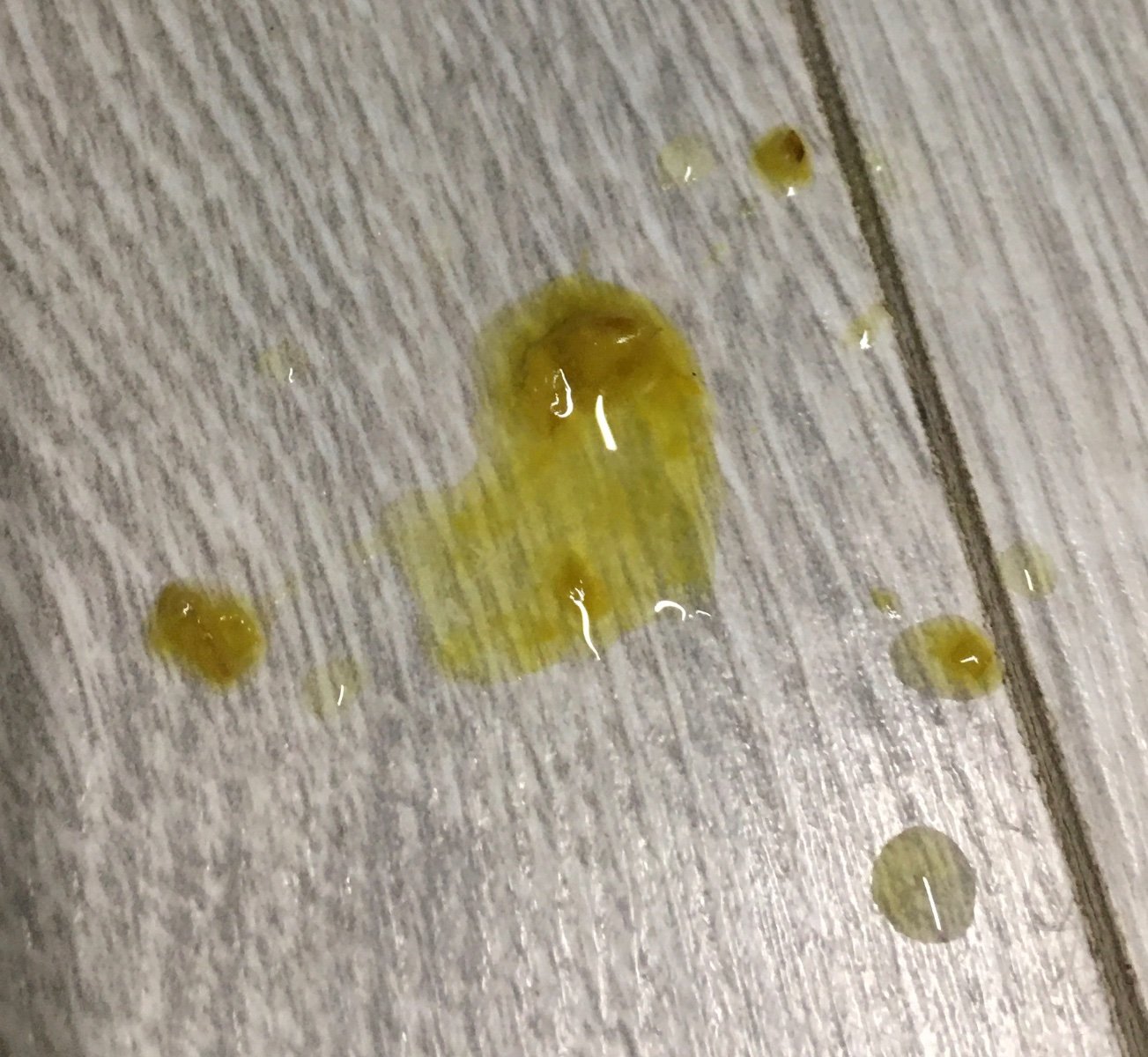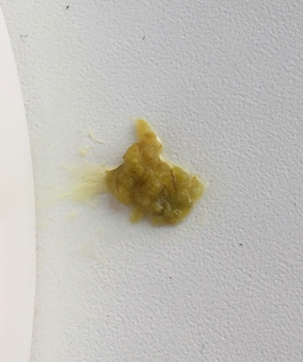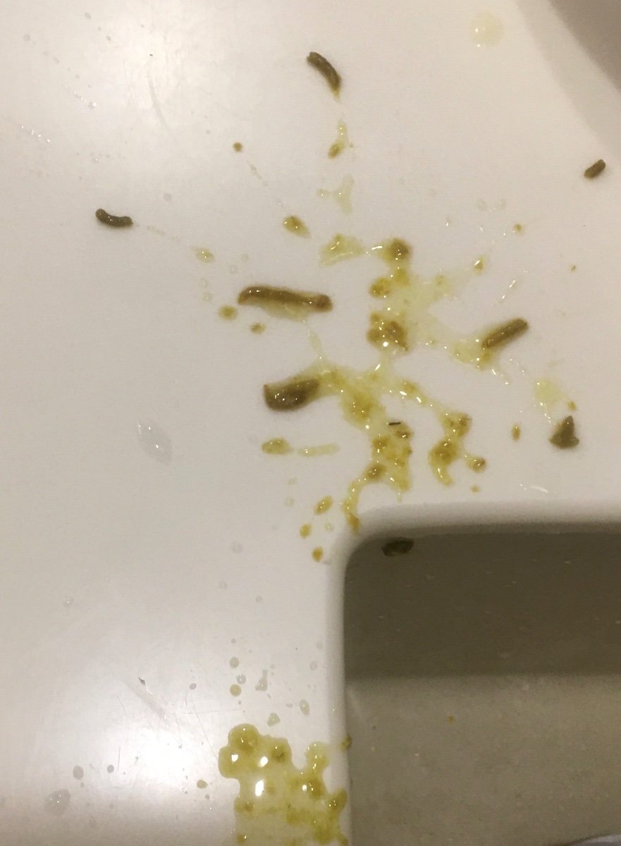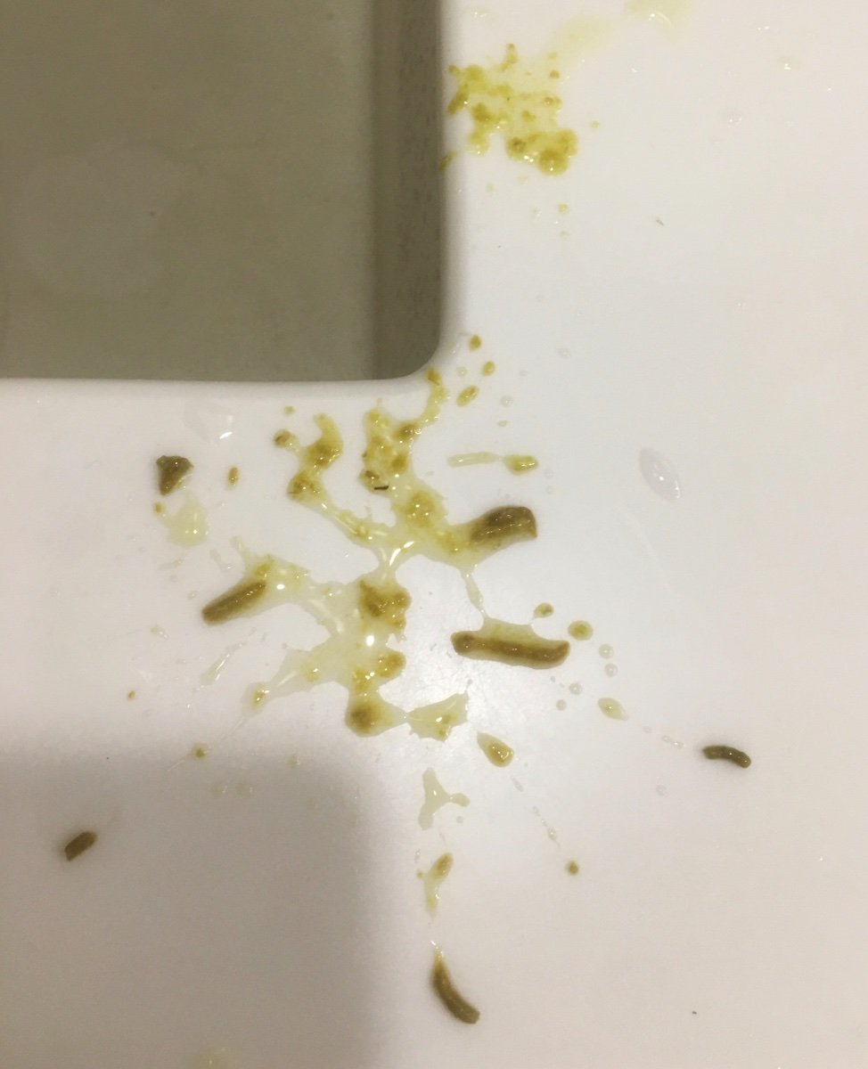 Утром вода в помете снова жёлтая.