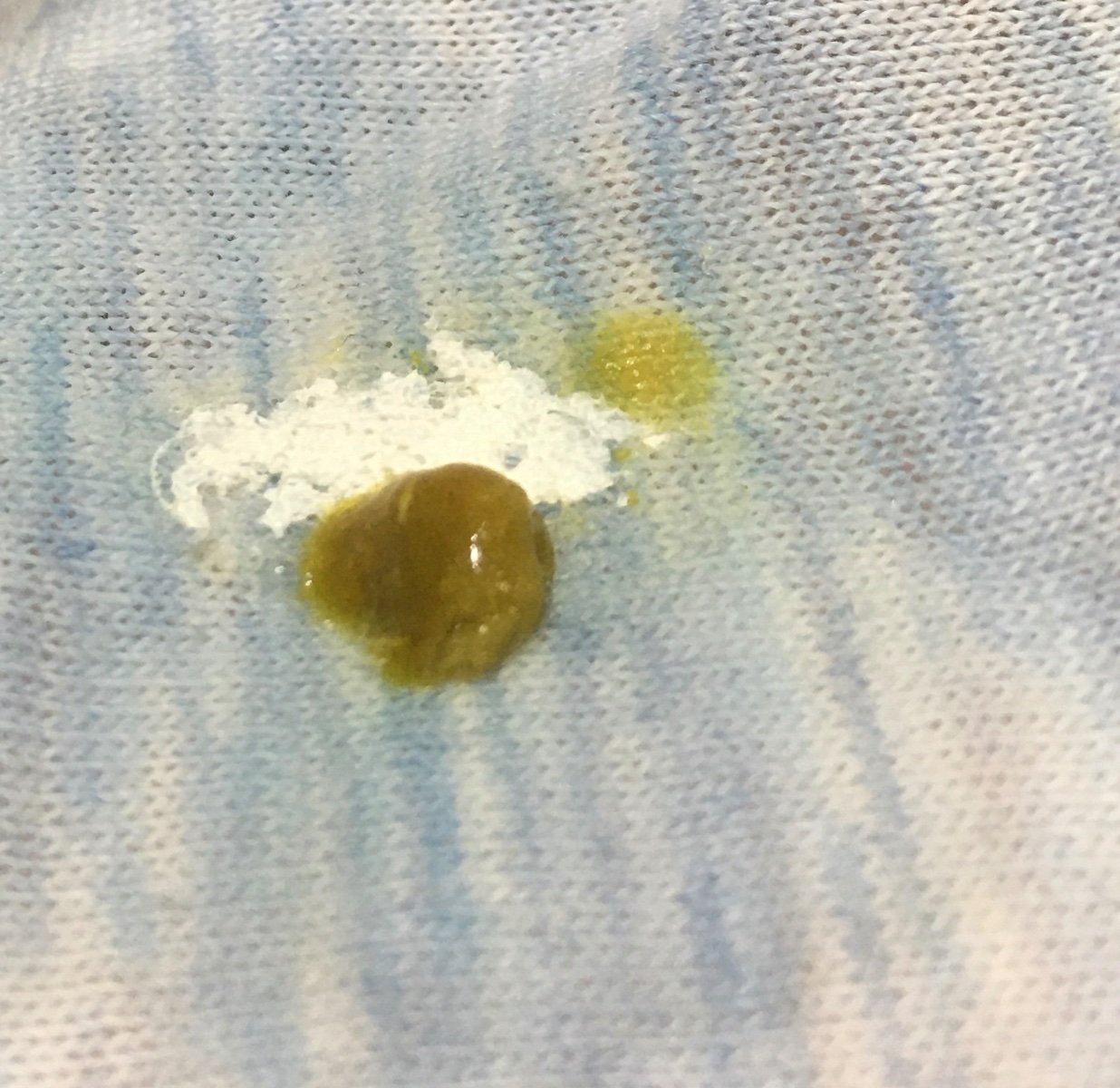 Желтое пузико (у лапы) от разлившейся глюкозы.