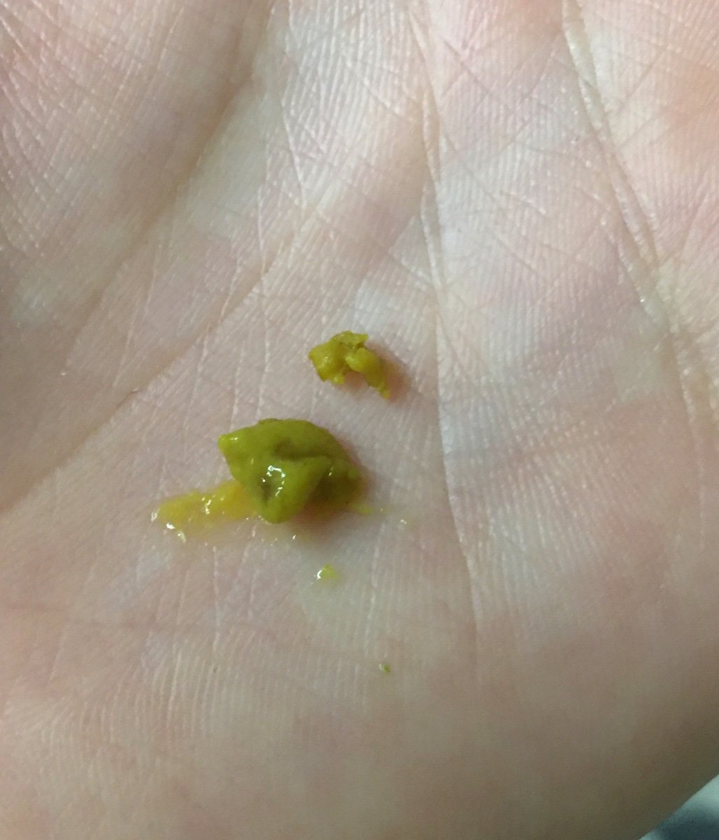 Помёта мало. И желтый.