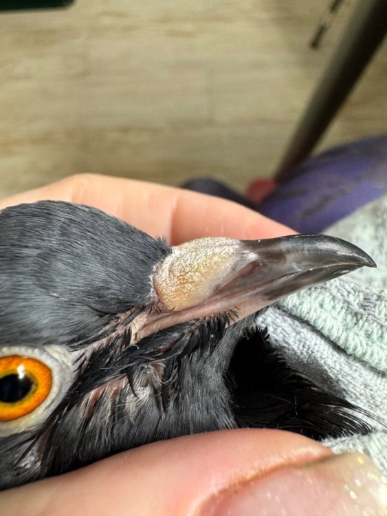 Юлия_03 Опубликовано 23 часа назад Автор #138 Опубликовано 23 часа назад (изменено) @маленький принц @Budgiek Здравствуйте ☘️ На сегодня на утро вес птиц -птенец 277гр (был вес 261) - взрослый 282 гр (был вес 285), у него вес не стабильный, от 280 до 285 гр Продолжаю поить по схеме. у меня вопрос про Метронидазол (даю только взрослому, 9 декабря будет ровно 4 недели). Наростов в горле у него нет, отхаркиваться перестал, сопли только засохшие с утра. Есть слизь, но она проявляется тогда когда даю лекарства. Он копит лекарства и не глотает и потом трясет клювом и все это с соплями вылетает (не часто, но всегда так делает именно на Метронидазоле). Наростов внешних нет, прилагаю фото, я не пойму что это за поражение и оно вроде как не растет и больше не становится, но и не зарастает. Ну и восковицы. Одна прям уж какая то сильно желтая всегда. Плюс под клювом когда водишь пальцем, чтобы проглотил лекарства, там как будто есть что то, но не плотное, сразу птица глотает лекарство. Может он просто так делает чтобы не пить горькое, не знаю. А так никаких уплотнений и наростов нет ни в клюве ни по телу. вопрос: Сколько максимально возможно давать Метронидазол? Понятно, что если нет видимых наростов, то плюс еще 10 дней. Птицы кушают хорошо, но взрослый иногда может часов 12 не есть, особенно после приема лекарств. Плюется слюнями. Изменено 23 часа назад пользователем Юлия_03
