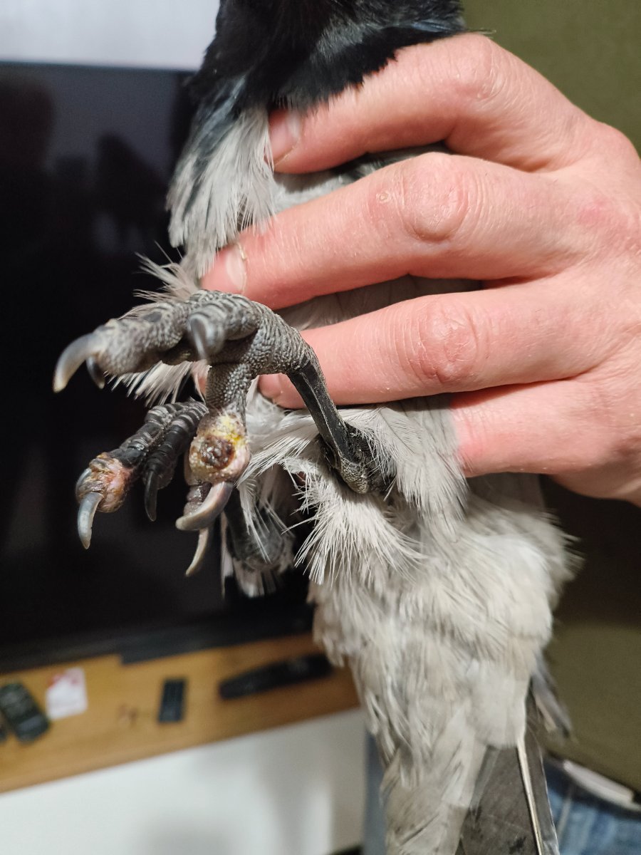 Оксана Ли Опубликовано 11 часов назад #1 Опубликовано 11 часов назад Добрый вечер. Подобрали молодого воронёнка. Скачет на одной лапке. Больная нога постоянно поджата,если он ее достает, то пальцы напрягает и лапа дрожит. На обеих лапах какие-то шишки. Подскажите ,пожалуйста, что у него с лапами и как это лечится?
