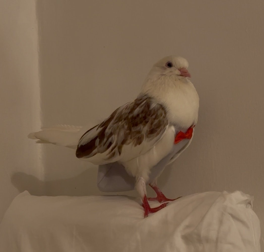 AlisaGordon Опубликовано 23 ноября, 2025 #1 Опубликовано 23 ноября, 2025 Здравствуйте, у меня 3 месяца живет породистый голубь. Голубь находился на улице до того как попал ко мне. Я проживаю за границей и здесь ветеринары не хотят обследовать голубя, только попугаи. На мой взгляд голубь немного заторможен иногда хохлится и меня смущает качество и цвет его стула. Цвет то ярко зеленый, то желтоватый, то с водой и белыми нитями. Он выщипал перья вокруг ануса. Его перья не очень плотные, новые перья на хвосте выросли рыхлые и восковица не белеет, судя по поведению это молодой самец не больше года. вес около 300 гр. Фото прилагаю. Я могу здесь добыть некоторые лекарства для людей (Гентамицин, Амикацин, Ампициллин, Цефтриаксон, Клиндамицин, Цефазолин, Метронидазол, Мебендазол), сделать птице инъекции, пролечить самостоятельно. Возможно это клостридии или сальмонелла, Помогите пожалуйста рассчитать дозировку и понять что за инфекция это может быть. Я понимаю что нужны тесты, но я уже отчаялась найти возможность их сделать. 2