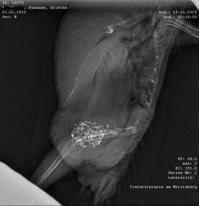 Grische4ka Опубликовано 4 часа назад #1 Опубликовано 4 часа назад Здравствуйте, помогите пожалуйста разобрать рентген. Заметны ли какие то изменения? Волнистик быстро и тяжело лишит. Паразитов и бактерий в помете нету. Но очень важно понять есть ли проблемы с внутренними органами. Заранее спасибо!
