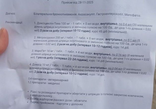 Svetlya4ok Опубликовано 2 часа назад #1 Опубликовано 2 часа назад Добрый день! Нашла птенца, неделю жил у меня, кормила кашей, после того как начал самостоятельно есть зерно, стал хохлиться, вялый, и появилась рвота. Пошли к веторнитологу, слелали рентген , прослушали и назначили лечение. Лекарства ,кот назначил врач давала 3 дня и кормила нутриберд а 21 .птице стало хуже, перестал есть сам, зоб стал. Отменила все лекарства. Дала атоксил, грела птицу, массировала зоб, дала кальция глюконат 0.2 мл в клюв, чтобы запустить перельстатику. Ночью все вырвал,зеленая рвота и зерна непереваренные 3х дневной давности. Очень похудел. После рвоты дала еще атоксил, и потом перешли на детскую безмолочную кашу без сахара, еда стала уходить🙏+ добавила флуконазол 50 мг ( капсула в 5 мл воды в клюв 0.2) вес птицы 195 гр. птица попрежнему вялая, все время сидит на грелке. Как помочь еще я могу