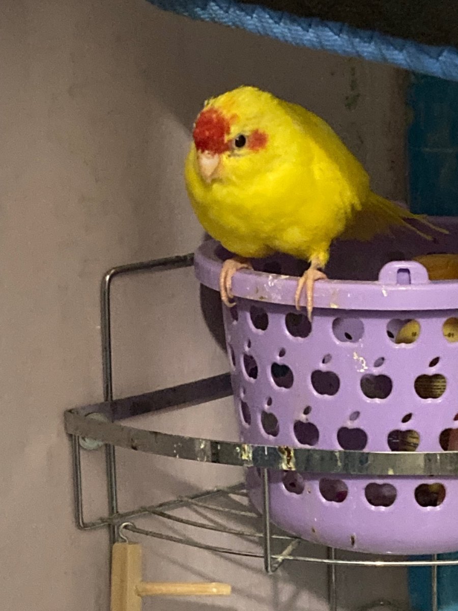 Менять раз в три дня игрушки в клетке, чтобы отвлекалась, но не класть на дно клетки, а подвешивать.