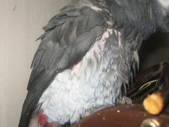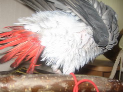 Бамбра Опубликовано 14 января, 2008 Автор #23 Опубликовано 14 января, 2008 (изменено) Два месяца на оперении не зацикливалась. Сегодня фотоохота увенчалась успехом. Это наш лысый правый бок: Здесь видна часть шеи (или ключицы) А это левый бок, который намного лучше И "ключица" слева у Гоши в перышках, и на шее лысины нет. За два месяца у Гоши выпало три красных перышка из хвоста, два серых (не самых больших), штук пятнадцать мелких. Пух летит. Раза два-три в неделю дно клетки в пуху (под ним, видимо). Перышки новые растут, раскрываются потихоньку. Но на этих лысых участках их нет. на дне клетки тоже, вроде, не находила. Кожа, на мой взгляд, не повреждена. В конце августа, когда мы были в Белом Клыке, растущие перья тоже были. С уважением, Ольга. Изменено 14 января, 2008 пользователем Бамбра