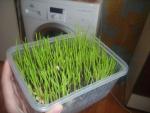 Для травки достаточно нижнего слоя марли, сверху прикрывать не нужно. Главное - следить, чтобы марля все время была мокрая.