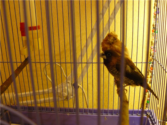 Pink Panther Опубликовано 19 сентября, 2008 #41 Опубликовано 19 сентября, 2008 (изменено) 1. Японский амадин, самец, окрас рыжий пёстрый. 2. Рыжик. 3. Сколько было на момент покупки-не знаю+живёт 4 года. 4. В клетке. 5.6. Опыта не было. 7. Любимая еда-укроп. 8. Птичий рынок. Изменено 20 сентября, 2008 пользователем Тивэль