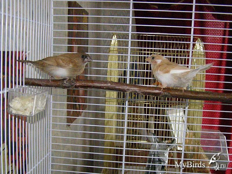 Яэль Опубликовано 15 июня, 2008 #36 Опубликовано 15 июня, 2008 1. Японские амадины, предположительно самцы, палевый пёстрый и светло-коричнево-серый))2. Крем-брюле и Капучинка. Но это так просто, называю просто птичками))3. Месяц после вылета, пёстрая птичка на неделю старше.4. Клетка 60х40х555. ниже6. Амадинки у меня первые.7. Когда пол определится привезу ещё пару. Через месяц буду брать гульд.8. Зводчик.