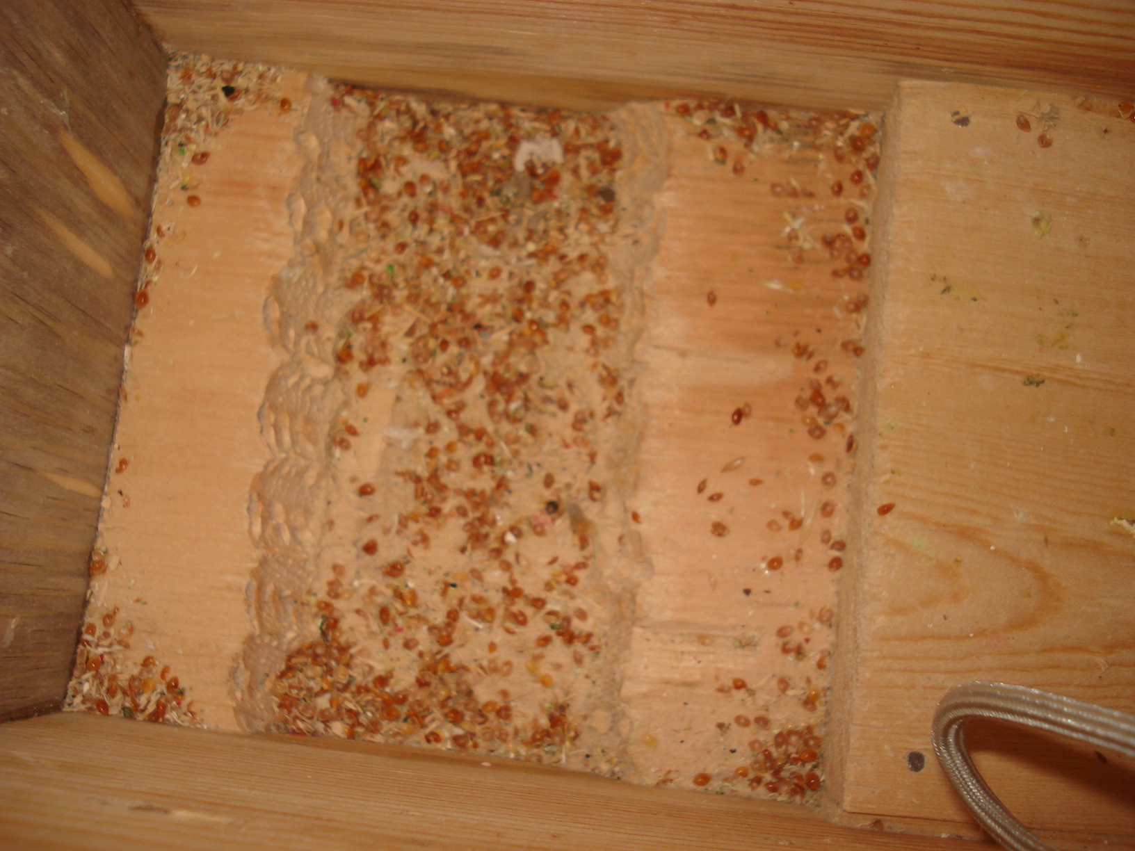 Мини Опубликовано 13 октября, 2007 Автор #2 Опубликовано 13 октября, 2007 (изменено) Хотела еще спросить. Как вы думаете, что это такое обнаружила на внутренней крышке гнезда? может это грибок? 0_о Вот у них гнездо есть, они туда шелуху складывают, не знаю, зачем) Изменено 15 октября, 2007 пользователем Амайзе